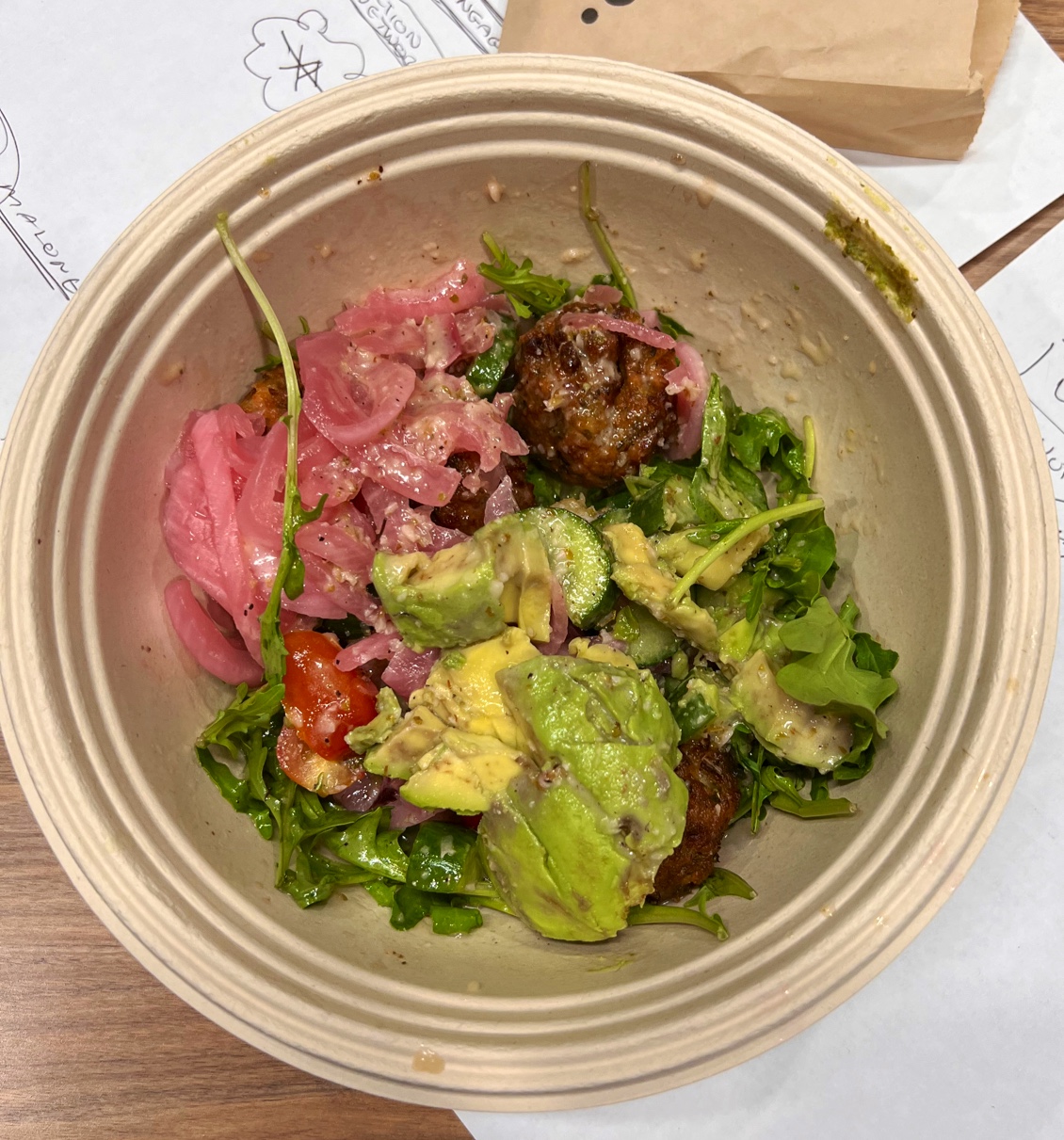 I had the bowl with braised lamb. Though the lamb was shredded, the flavor was wonderfully tasty (note: I only wish that they put more in the bowl); and, braising is a excellent choice. The accompanying ingredients (e.g. greens, grains, beans, dips and toppings were most welcomed. Being a first-time customer, I only hoped that there were preconfigured dishes. This would have taken away the awkwardness of choosing what to pair together; also, allowing me to experience what is normally put together in a traditional dish.