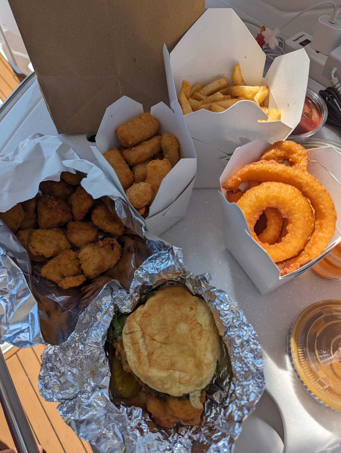 The problem was the food. We drove 5 min to our place and everything was cold by the time we opened it up. Both bags broke when we shook “the specials” and everything went onto the floor. 🤷♂️ The chicken tasted like a thicker chicken McNugget. That’s not a compliment. I’d say the fries could have been good if they were warm, so I’ll just imagine it. As for the chicken sandwich, they used tinfoil to wrap it up, so the sandwich was crushed. The bun only covered half of the sando and it was pretty forgettable. I could see if it had a couple more pickles, some sauce and if it was warm it would have a chance.