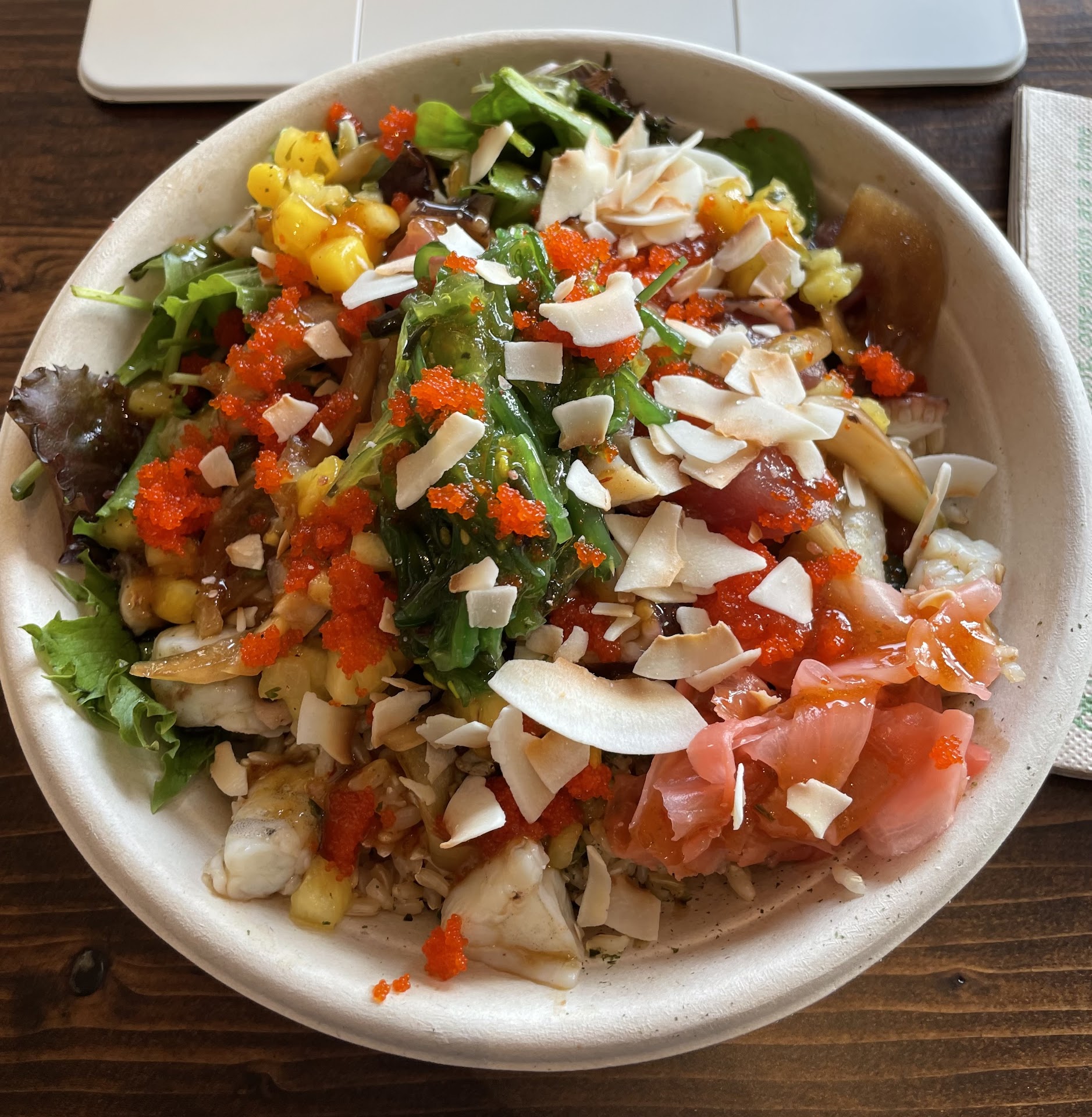Great food, amazing customer service. All the employees show that they care about what they do for each guest. Love being able to build my own bowl to my liking and I was explained in detail about all the toppings, proteins, marinating sauces and more toppings, then house made daily finishing sauces.. my favorite is Togarashi their version of spicy Mayo! Then you get to add crispy toppings from Wontons, Nori, tempura, crispy onions and garlic, toasted coconut, wasabi peas, sesame seeds, chili flakes, hot chili oil and sea salt. Don't forget the Dole soft serve. The pineapple is as soft and creamy as a cloud and very refreshing. Tons of drinks to choose from. If you stay in to eat you get full table service. They bring your food to you and dont let you worry about any trash. They are very passionate about recycling which i love! For sure a must for me at least once or twice a week! Best of luck to everyone at Island Fin Poke Co. They have chips now which I tried both and I love them both. Also if you want a new reusable bag all the proceeds from the bag purchased goes to #OceanConservancy.... worth it for sure!!! Go give it a try I guarantee you...