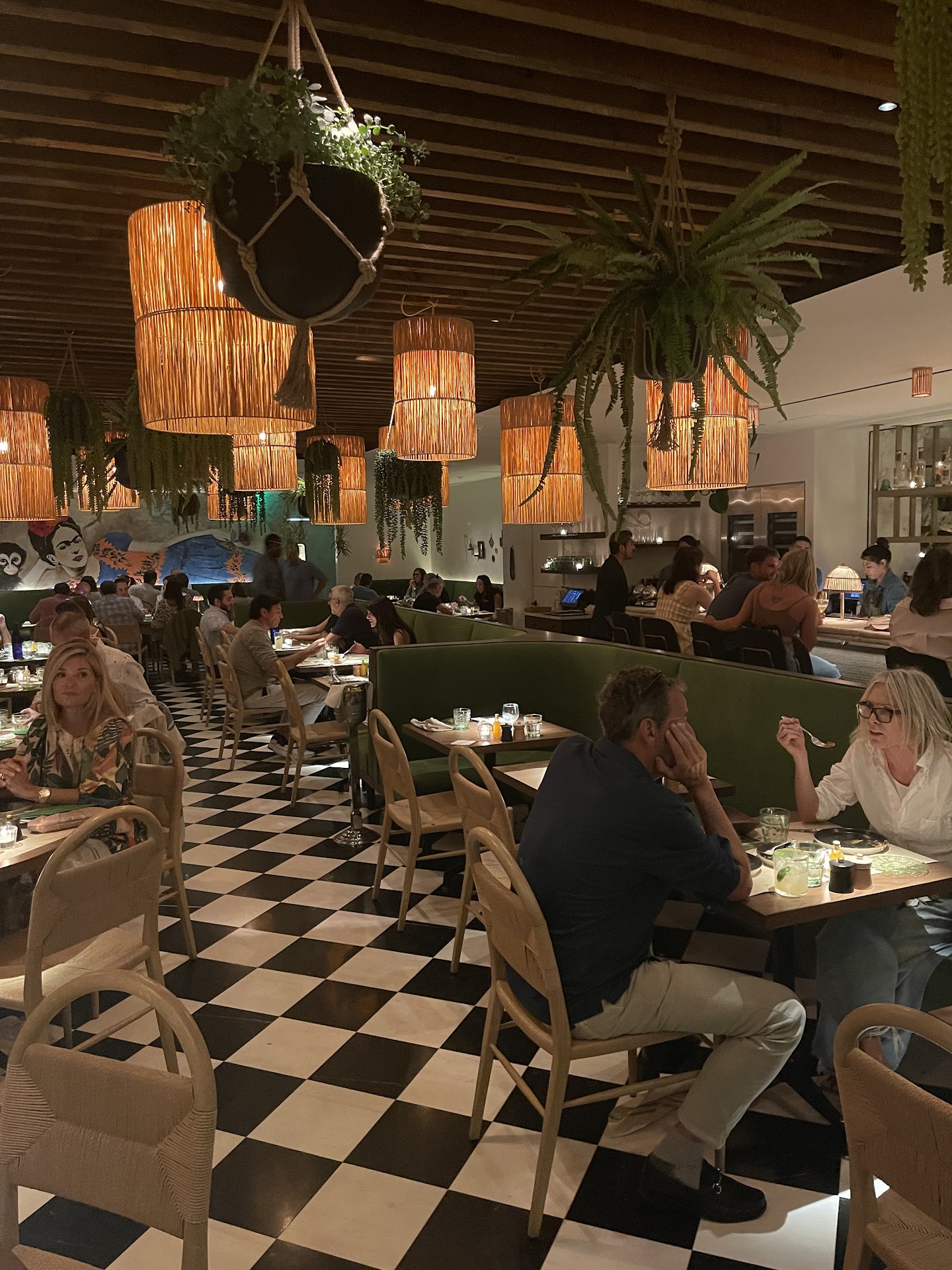 We entered at 9 to a cacauphaony of noisy guests. We were seated at once in a large plush booth with plenty of privacy and a host of attentive staff who were 100% on point. Ambiance was warm and cozy once it died down around 10pm, and the decor was upscale1920's Havanna with lots of plants, which I loved. The fully mirrored bar is a great touch, making the whole place feel much bigger while maintaining its cozy size.