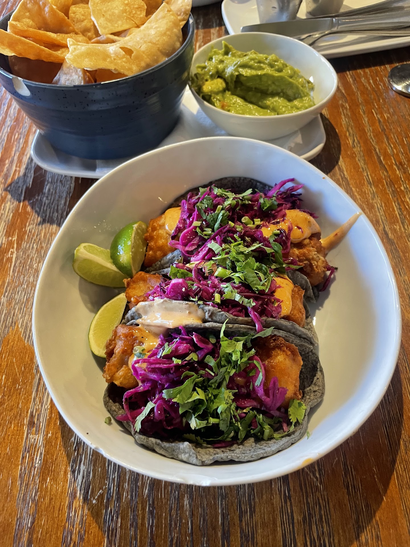I was a bit disappointed. this place elt like a glorified food truck with inflated prices! they charged $3.50 for a tiny bowl (like a small handful) of chips and salsa (tastes like a pasta sauce) and double for a tasteless taco! pleeease! Also, be warned: tacos are about the only thing on the menu, with the exception of a couple of over-priced random things like salads and chicken wings (?) There are no burritos, enchiladas or anything remotely mexican, but, rest assured, chicken wings are on the menu... (what's that about????) I was left unimpressed by the tacos, the margaritas were poor and the service was VERY slow. To make matters worse, there was a barmaid/server who was down right surly and just seemed like she didn't want to be there. She was unpleasant with ALL of the customers AND the staff! It was honestly quite shocking to witness... However, there was a younger guy who did his best and seemed eager to make our dining experience a pleasant one- that's worth 2 points, but I won't be going back and have exchanged with several of my friends who share similar thoughts. To top it off, I awoke in the middle of the night with quite the upset stomach which persisted until late afternoon the following day(????) I don't know if it was a...