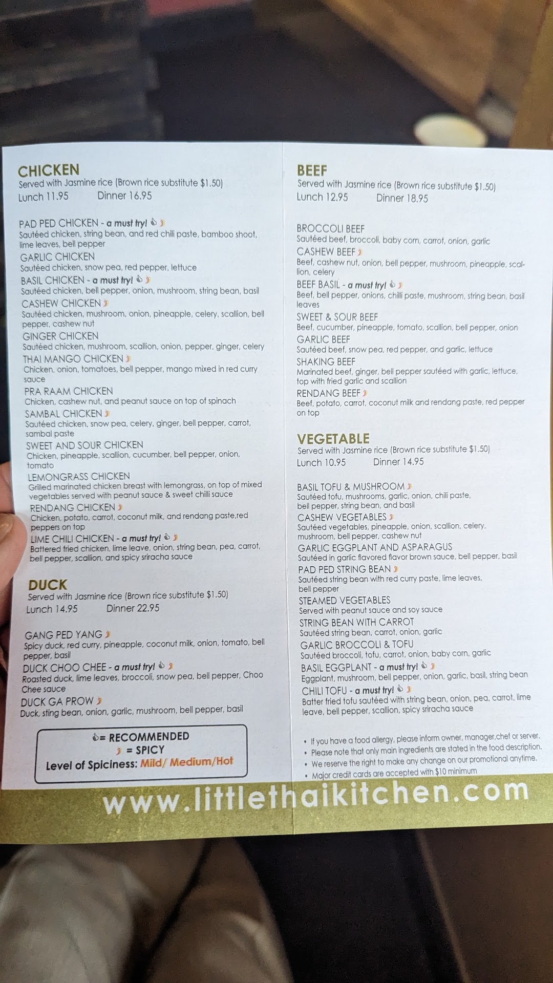 Read moreSuper simple dining area, but the food quality is OUT OF THIS WORLD!! Staff was very pleasant and attentive, and every dish I ordered that I wasn't able to finish was easily reheated and still offered the same quality of flavor and texture as when it was served. The pad thai was a little on the sweet side for me, but the chicken was cooked to juicy perfection 👌🏾. And OMGosh- leave your house RIGHT NOW and go get the green curry with beef!!! Best I've had in YEARS. Papaya salad was crisp and everything was spiced perfectly. I know it's cold, but Thai iced tea is a must😊😊 Definitely worth a visit, did...