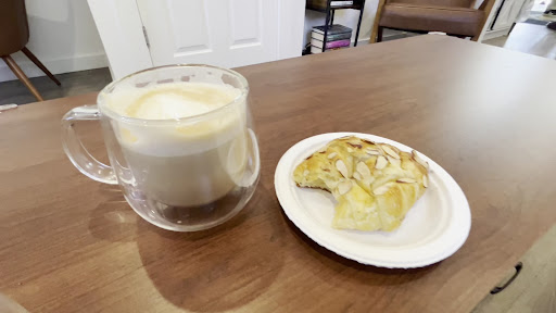 This place is tiny but somehow manages an great mix of couches and seating options. Double Espresso was a little watery, but super tasty. Checked all my boxes for nuttiness, bitterness and roastyness (yes, that’s a word). Caramel Latte was expertly prepared and absolutely delicious. Just the right amount of sweetness and subtle caramel flavor to still let the espresso shine. Big fan of the big insulated plastic mug as well. Almond croissant also delicious. Incredibly buttery, tasty almond filling. Osciel was nice enough to warm it up, but it could have used an other minute in the oven IMHO. Only complaint would be the plate for dining in - would have been so nice on anything other than paper…!