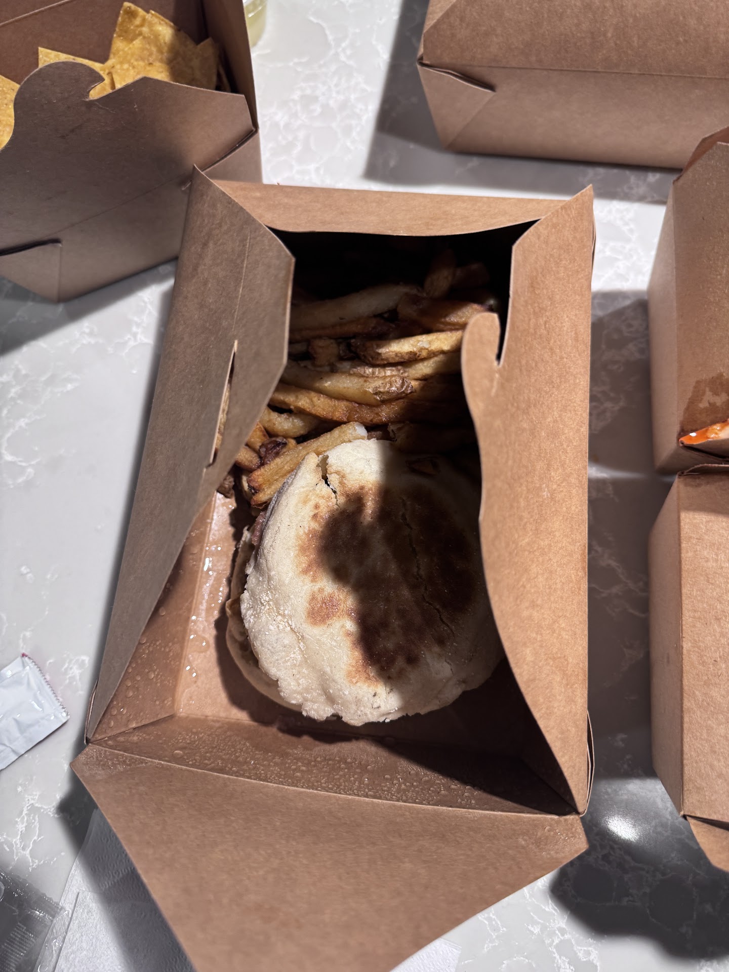 Read moreA lot of first time experiences. Ordering was a good idea on paper but the execution not so much. I ordered for delivery the Brussels sprout, Smokey Chicken Quesadilla, Bacon Jam Burger, and Turkey Chili. The Brussels sprout was the best item out of the bunch. The Smokey Chicken Quesadilla was... unique... it wasn't bad, but it wasn't a quesadilla - it was unlike any quesadilla I ever had before, and didn't come with salsa or sour cream. I compared what I received with the menu, and I do believe it was the correct item that was delivered. The Bacon Jam burger sounded good on paper but was the worst hamburger I've ever tried. The best of the burger was the top part of the English muffin with the Jam. Lastly, the turkey chili was more like a pasta fagioli or a not so soupy stew with way too many beans and carrots relative to the sauce. Also, the packaging for the chili was.. concerning. I'm not actually sure you could call it Chili. For the first time in my life, I had a few bites and threw the rest away. Also for the first time, the empty cartoons stunk up my apartment so bad, I had to dispose of them all quickly, and my apartment still smelled for nearly a full day after. The corn...
