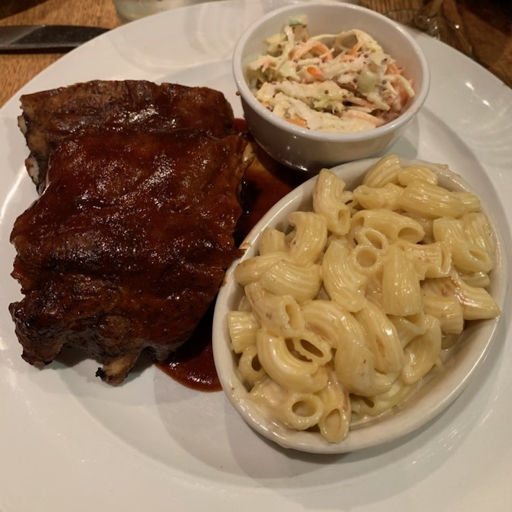 An order of ribs was described as okay, with little or no dry rub for seasoning and a sweet sauce. A side of Mac and Cheese comes with this dish plus coleslaw. More a half rack in size. Not a true half or full rack, but The Ginger Man is not a barbecue house, so he was just happy to be able to have the choice of ribs for his lunch. A steak and cheese wrap with green pepper, onions, arugula and garlic aioli on a wheat pita was flavorful and tender. Fish and chips were crispy. The kind of fish was the standard cod. The hand cut fries were perfect. I always get the salmon which changes from time to time in how it's prepared, but it's always delicious and light served with a risotto.