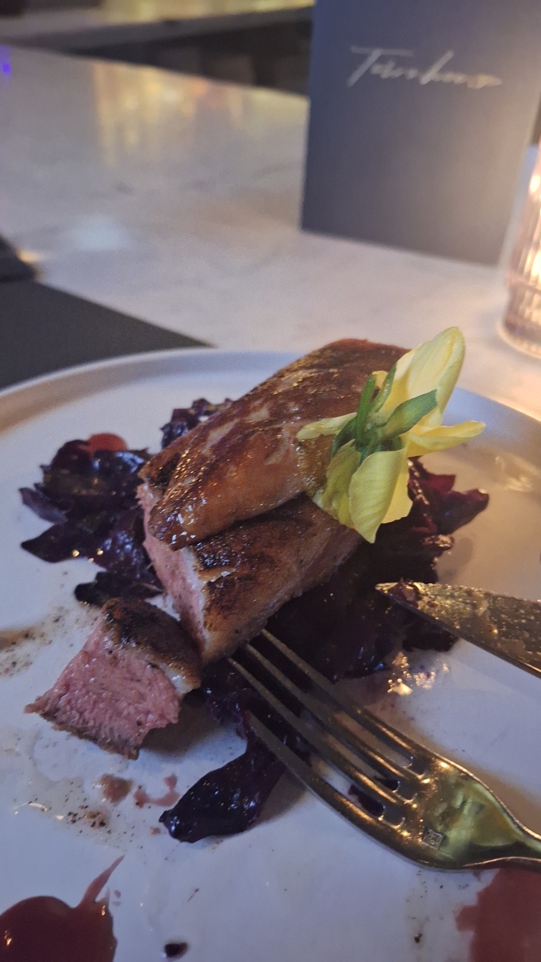 To complement our meal, we took the sommelier's advice and enjoyed a glass of Riesling. The wine was a great choice, cutting through the richness of the duck and enhancing the flavors of the food.