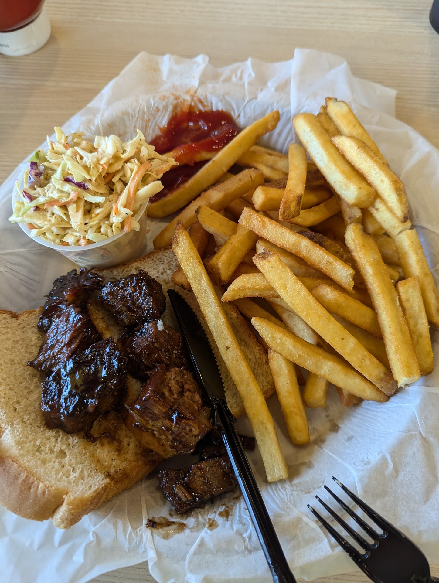 The brisket is so delicious and the smoke is perfect on it. Ribs are incredibly tender and some of the most suculant things on the menu. To top it off, this pulled pork is so tender and flavorful my mouth is just watering. Shoot, even the tofu is top notch. It's a little sweet with a touch of smoke and crispy edges that make it better than any non meant item I've ever tasted. To wrap it all up, these burnt ends are the real deal and not just slices of meat. They're the true cut and taste delicious but you have to be careful, they do run out fast since they're the real thing!
