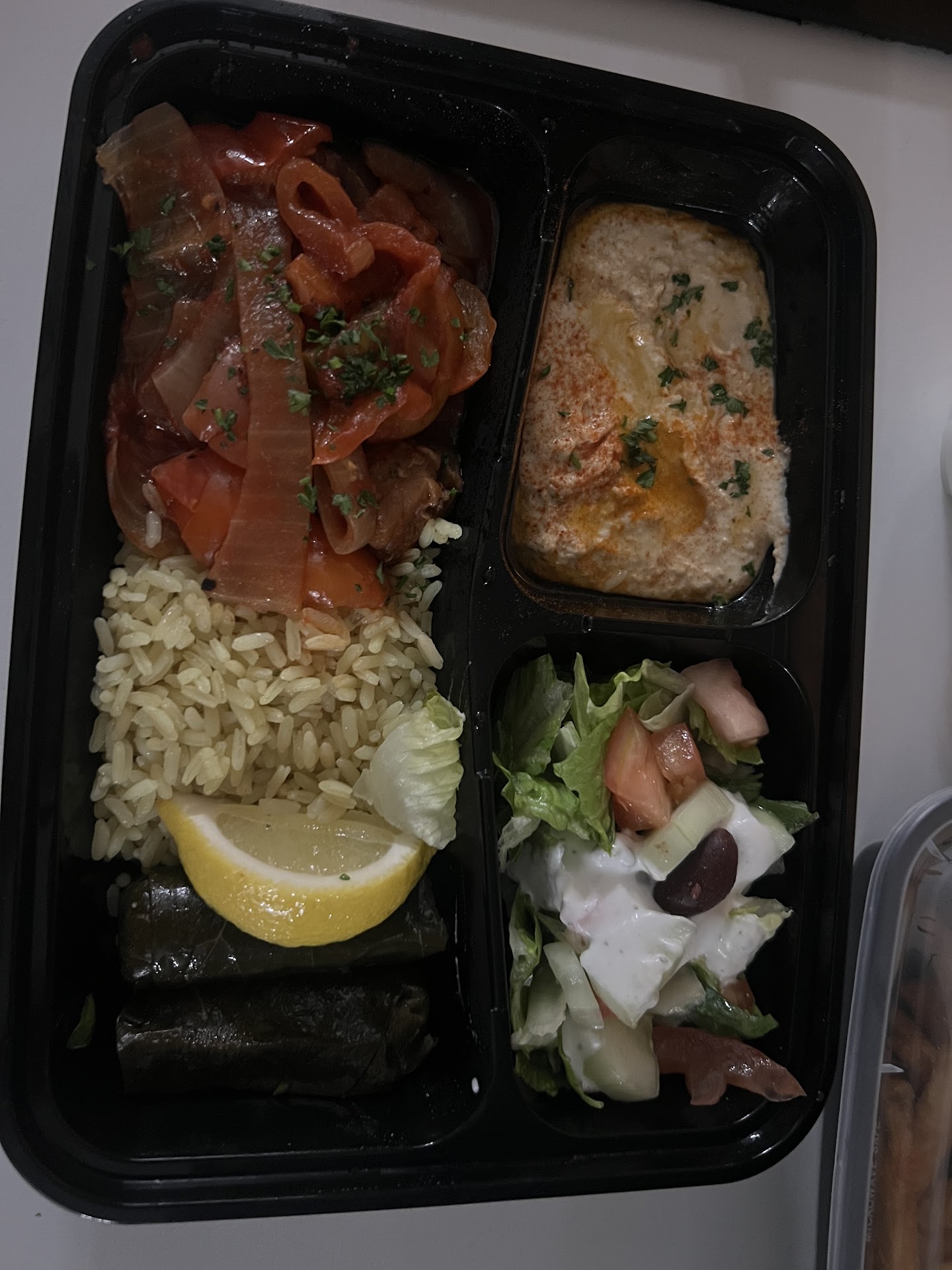 Absolutely horrendous experience here tonight. We were a group of 7, we got there at 8 pm. We sat outside and ordered quickly. We had no idea the kitchen closed at 8:30 pm because the server didn’t tell us. We all ordered gyro meat sandwiches. The server walked over to the window about 15 separate times as food started coming out because everything was messed up. The gyros didn’t have any tomatoes or onions in them, the one that wasn’t supposed to have tzatziki, did. It all was wrong. Our orders came out sporadically over the course of 30 minutes. Once 6 of the 7 gyros finally came, THEN the server first told me that they were completely out of gyro meat suddenly and if I wanted the chicken schwarma I could have that instead (she didn’t mention compensating anything, didn’t even apologize). I was like uhhh well duh I want food so I guess I’ll have the chicken ?? At this point every other person in my group was already done eating. It was almost 9 pm. Then she goes on and blames us for coming so late and that “usually they only do take out orders after 8 pm” but she never told us this, we would have totally gotten take out! It was insane. The woman had no remorse, she was so rude and had a nasty attitude and acting like it was our fault they ran out of food and got literally every single thing in our order wrong. And then she STILL did not compensate anything, she said she’d give me free baklava (which you already get when you pay cash) and I was like no that’s ridiculous and then instead of just taking off my sandwich or taking off a few dollars, she just gave me a coupon for a BUY 1 GET 1 FREE for next time. Like are you serious? There will NEVER be a next time. Horrible horrible horrible. I will never...
