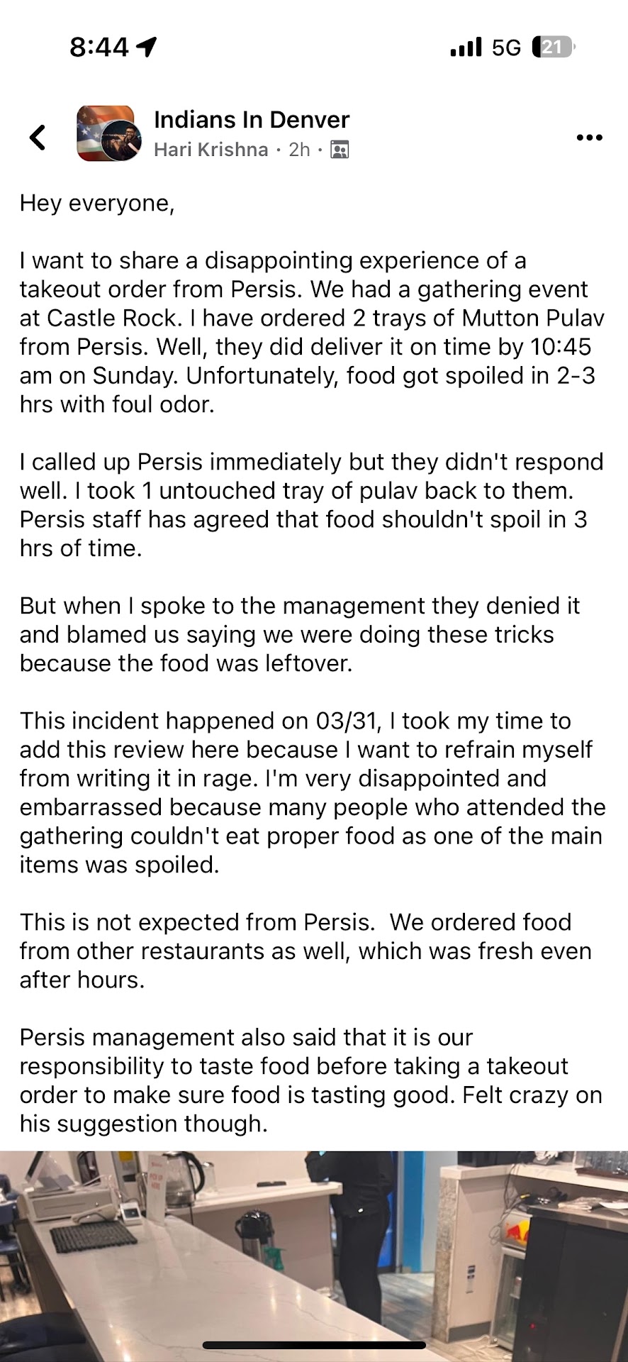 Read moreHi All Yesterday we went for Lunch to this place this was not our 1st time we took food them from this place more than couple of times in Last year and food was good that's the reason we went but yesterday it was a horrible experience. We ordered Veg Platter which includes 1 appetizer, 1 Curry ,1 Dal , Biryani, salad , Raita and Naan When the food came we were disappointed to see the Gutti Vankaya ( stuffed Eggplant) curry nd Naan I asked is this the Right combination with naan? The staff didn't said anything so then I ordered a separate order of Malai kofta Curry because I love naan nd I want to eat it so we ordered. Coming to veg platter again taste of Dal was good and stuffed Eggplant was Fine. Veg Biryani which they gave there is no single veggie in it except I can see Fried onions.Samosa was Good not exactly samosa filling but potato filling with some spices was good to eat. Malai kofta curry order when came and I tasted it was too much Salty. Talking about the staff behaviour they are not at all bothered about customer very very casual attitude. We gave the feedback back nd they are like ohh ok ,no apology or kind of concern we saw them on their face atleast they could have listened to us and talked to us in a proper way that's what I expect if you are facing a customer. While going from home we were about to enquire about party order also for next month but the moment food came and we tasted we didn't even asked for price quote and definitely not going to place party order or normal dine in and take away...