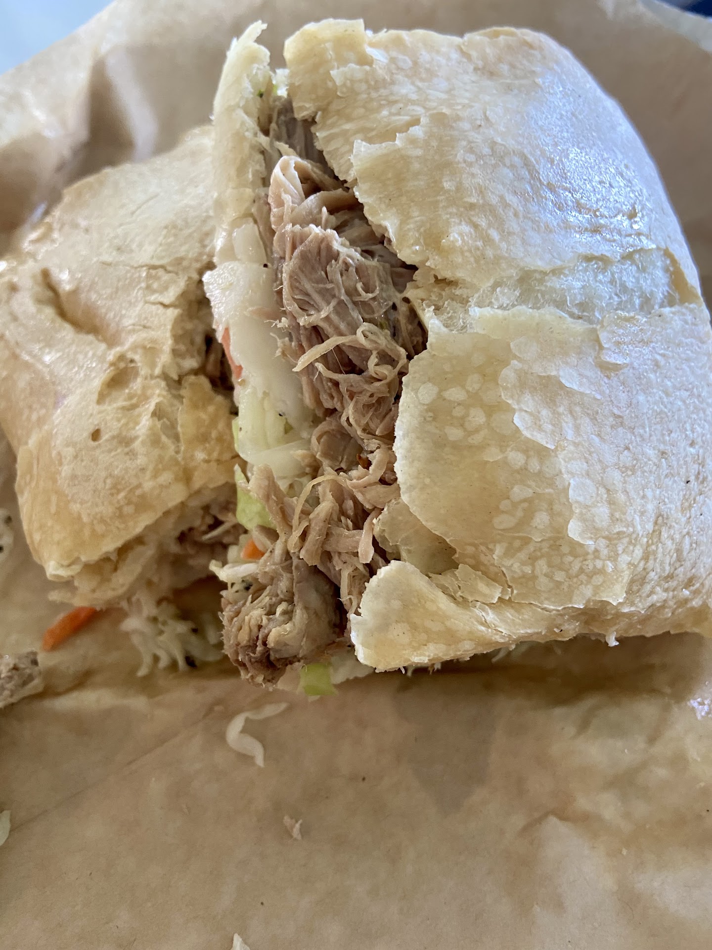 The food arrived fairly quickly in an unassuming plastic Lunch basket with a small cup of Yuca fries on the side. The Yuca fries were outstanding, very garlicky and the great combination of starchy texture you expect. If you havenāt had Yuca fries before, they slightly thicker than a potato fry with a crispier exterior and starchier interior. Occasionally the interior can be too dry but Cuba Cuba really balanced these well with the garlic aioli so it was delicious and moist. Some of the best Iāve had.