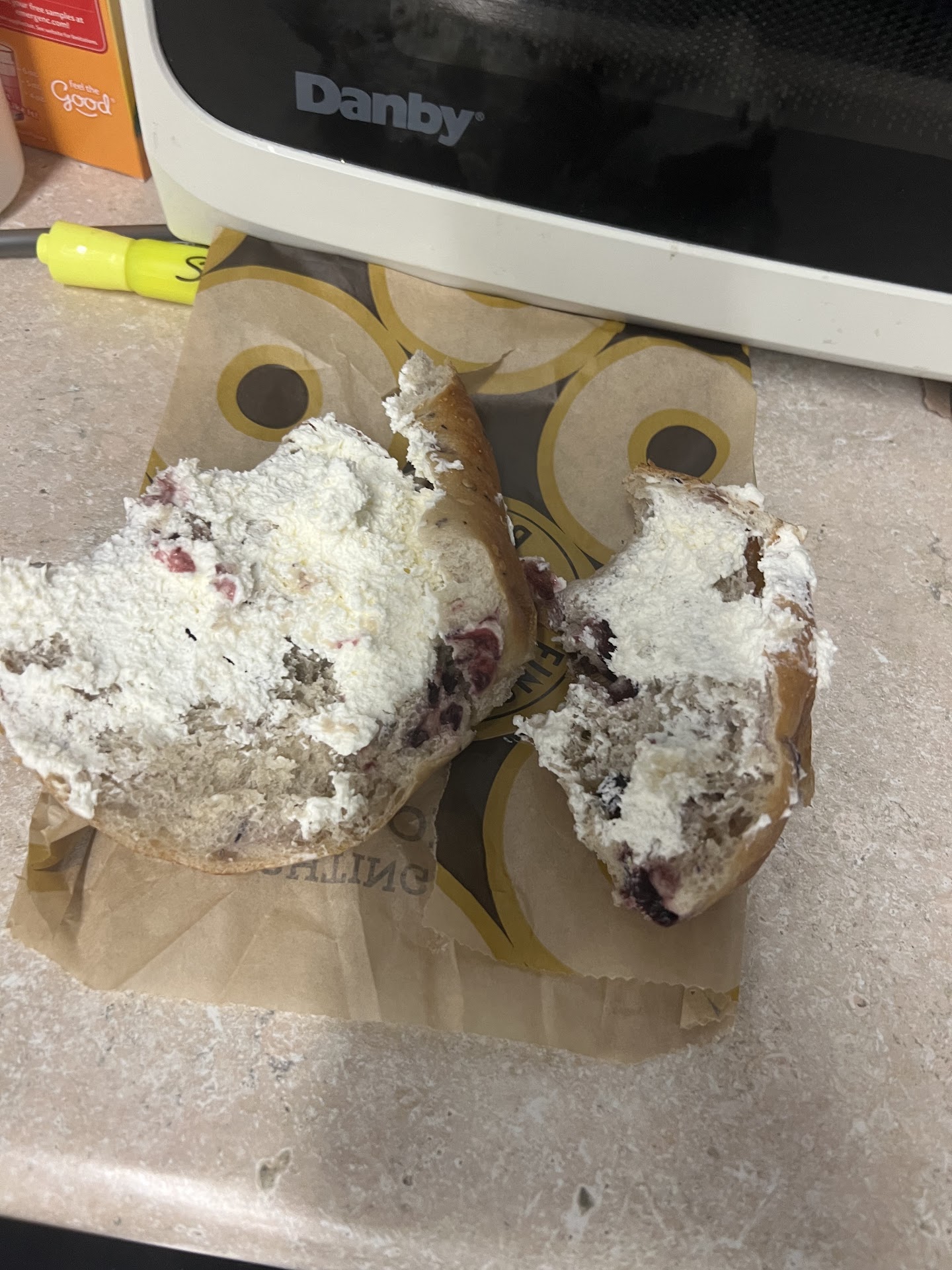 My wife and I stopped in to get a couple of bagels on Sunday, 9/1, at about 10:15 am. Immediately you could tell something was off with the store. The bagels were about 1/3 stocked and the cooler was nearly empty. I understand it's a Sunday morning but do you not plan for a large rush? No employees were working up front; all were on the back counter. Eventually someone said "they'll help you at the other register." Okay, fine. We walk over to the other register. An employee grudgingly walked over and took our order. I made the mistake of ordering a cinnamon sugar bagel which they were out of and she made a flippant remark about being out of the bagel. Fine, I ordered a cinnamon raisin bagel.