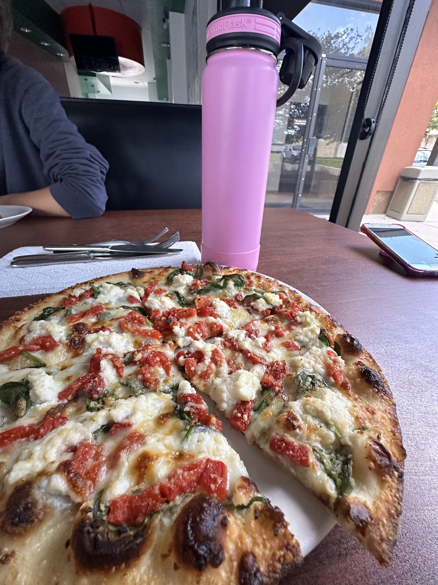 The thin crust is not too tough and not too soft, but has an amazing chew and spring to it. The red sauce is just like Papa used to make. Their ingredients are fresh and they know how to properly put spinach on a pizza (under the cheese so that it doesn't wilt).