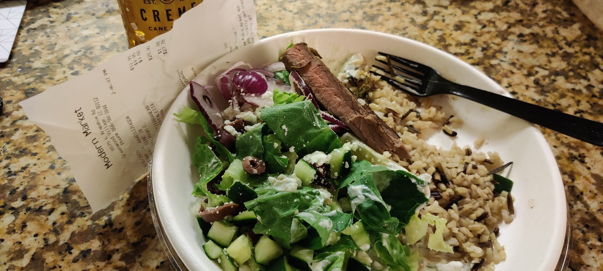 The food here is actually quite wonderful, but you guys only get one star. Allow me to explain why- In the past two weeks we have been to this location twice. The first time, we ordered and on trying to leave a tip were informed either by a manager or someone trying to appear authoritative that they could not accept cash. This, spoken while looking me dead in the eye, was an outright lie. We generally don't pay with or carry cash, and I tried to pay in cash so that we could tip, on account of the heaping bowl of cash tips sitting in front of us on the counter (I assume they went ahead and decided to accept them since the same bow was sitting there today, nearly empty.). Today, we went in and were once again met with worthless service. We ordered a Mediterranean bowl, my usual, which costs $12.95, in addition to a Mushroom Muffaletta, my wife's favorite. Those normally cost $9.95 but were advertised on the in store menu today as a special (chefs choice I think it said?) for $5.95. We ordered and then asked about beverages, to which the response was to the effective of "what you see is what we have", But as a contact wearer who left his lenses at home, to me that indicated they either had nothing to drink or didn't want the sale. I had to ask the cashier to guide me through the beverages that were available after he had already been rude once in addressing us. We ordered two cream sodas and were met with a price of somewhere in excess of thirty dollars, and put back a drink opting to share one. this brought our new total to 27.78. Please help me to understand this: -Mediterranean bowl: $12.95 -Mushroom muffaletta: $5.95 -Bottled soda: $3.00 (grossly overpriced but that's beside the point) By my math, after taxes It should have been in the ballpark of $22.50, however our total of $27.78 has us sitting on a tax rate of right about that amount (21.17%?). Isn't that why we broke off from Europe almost 250 years ago? What are we eating that's worth that much inflation exactly? I digress. Finally, after asking to be seated inside when asked "for here or to go?" by the cashier, as reflected on our receipt - they opted to give us a to go bag, (as though the place, while completely dead and vacant sans maybe 3 or 4 guests who were already seated and eating, was too busy for them to understand "for here" vs. "to go". ) and sent us on our way. I guess they don't want our business. On a side note, I actually do know why the discrepancy in price occurred, perhaps their cashier can read this review and figure it out as...