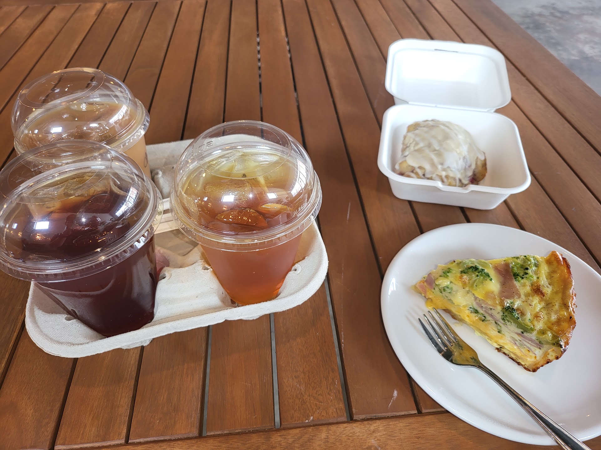 They sold out of the chorizo+green chili quiche right before our order, so we ended up getting the roasted red pepper+bacon+gouda. Absolutely loved it and devoured the quiche! The crust was a touch salty, but otherwise this is one of the best quiches I’ve had. We ordered other pastries as well, and from those the scone was decent! The drinks we ordered were decent as well. The espresso had a nice dark roast to the flavor. But the quiche was the star!