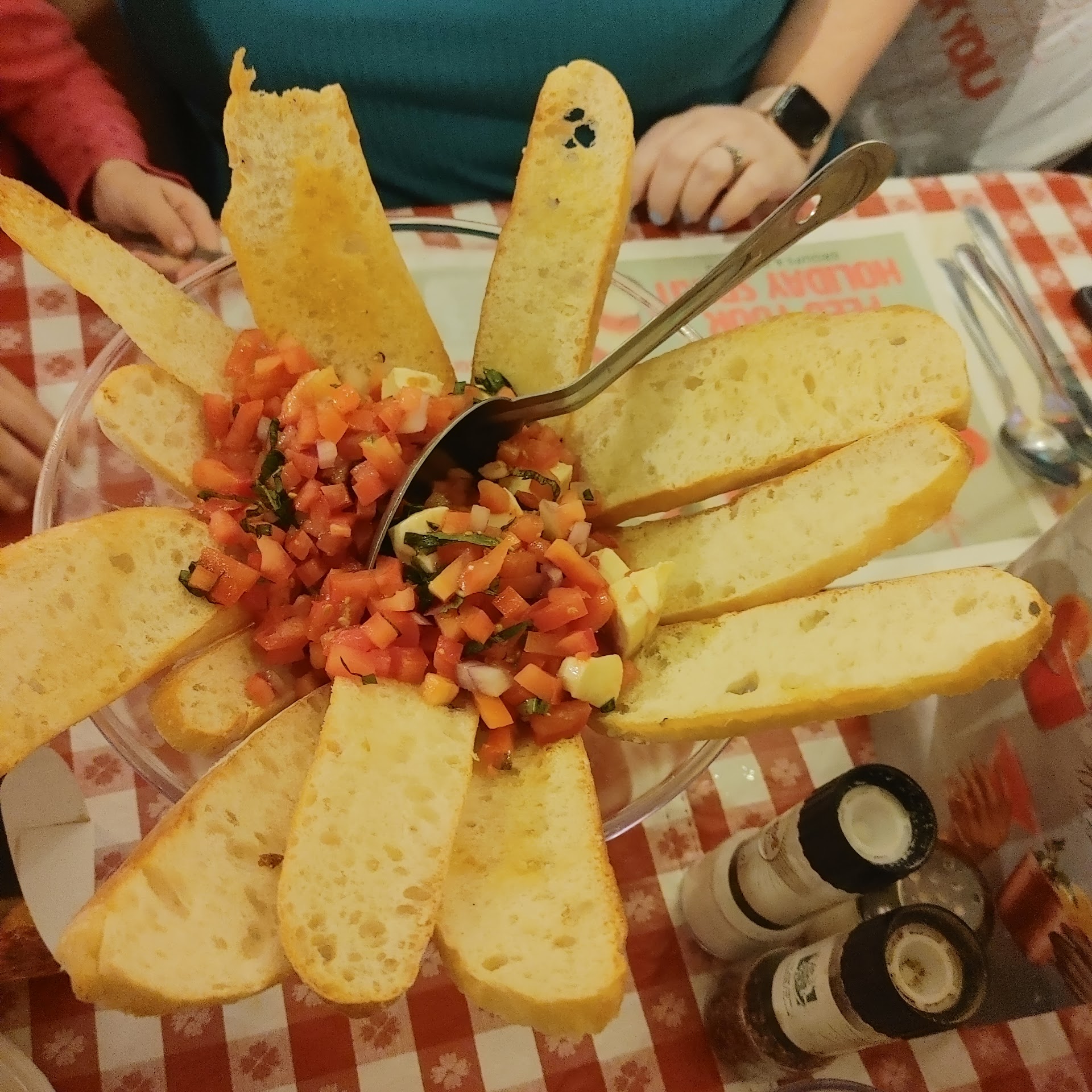 I ordered carry-out & I was unbelievably disappointed. I've always ate inside & everything was great. We spent $89.00 for 2 people b/c they're so greedy & make you order their giant size $22 chopped antipasti salad instead of a individual size. Very disappointed b/c the next day the salad was awful, soggy, & bad... just that fast. I didn't even get to eat any of the salad. I ordered their personal size entrée, baked ziti & I ordered extra sauce & extra ricotta. It did not have either on it. I know this b/c I've ordered it before. They charged me extra & gave me less than normal. I ordered spaghetti & Meatballs personal entrée, meatball was great, but also ordered extra sauce & got regular than normal as well. I ordered their new garlic bread with the cheeses & it alone was $13.50 & over garlicky (I LOVE garlic) way too much, no cheeses, not parm not any. I ordered their $12.50 chocolate chip cannolis, ugh nothing about them was sweet except the chocolate syrup they gave on the side. The cannolis shells were tasteless & the cream on the inside was gritty & unflavored. I do NOT understand what the deal was, but if they don't make it right I will NEVER be back. I was very upset to the fact everything new or sounded good, you had to order in family size pans. Why? That's ridiculous b/c there is only 2 of us & even if we had more to feed? Not everyone LIKES the same thing. I haven't spent this much on any orders any where else unless it's steak dinners or I ordered way more food. The way you have to order is a huge disappointment. I do NOT know why we cannot order the chopped antipasti salad as a side with our entrée or even just one as an entrée type? The robot (guy taking my order) on the phone said I could NOT!! Everything I asked he said no, no, no!!! So I have to order a huge salad that is normally for 4/6 people when I only am feeding 2? It didn't save well. B/c I love the salad from there I went ahead & ordered the huge salad in anticipation id be able to eat on it the next day. Nope!! The online menu is ridiculous & I'm debating if I'd ever order carry-out or eat inside even, b/c their ridiculous menu & how you can only get food for huge families. It made me think its all Pre-made way before b/c the robot on the phone stated "it's the way we prepare our food & we cannot just scoope food from every tray" hmm... really? I understand some food is Pre-made, but that much food? Or how about the chopped antipasti salad??? That should be fresh & made as the day goes, but maybe that is why my salad didn't last over night??? I want real answers & not ones that make absolutely no sense. They need to get a better employee who cares to answer the phone to take orders or ANSWER QUESTIONS, b/c he's rude, unsympathetic & acted like when I called twice to ask questions about their sams club menu. (Everything in...