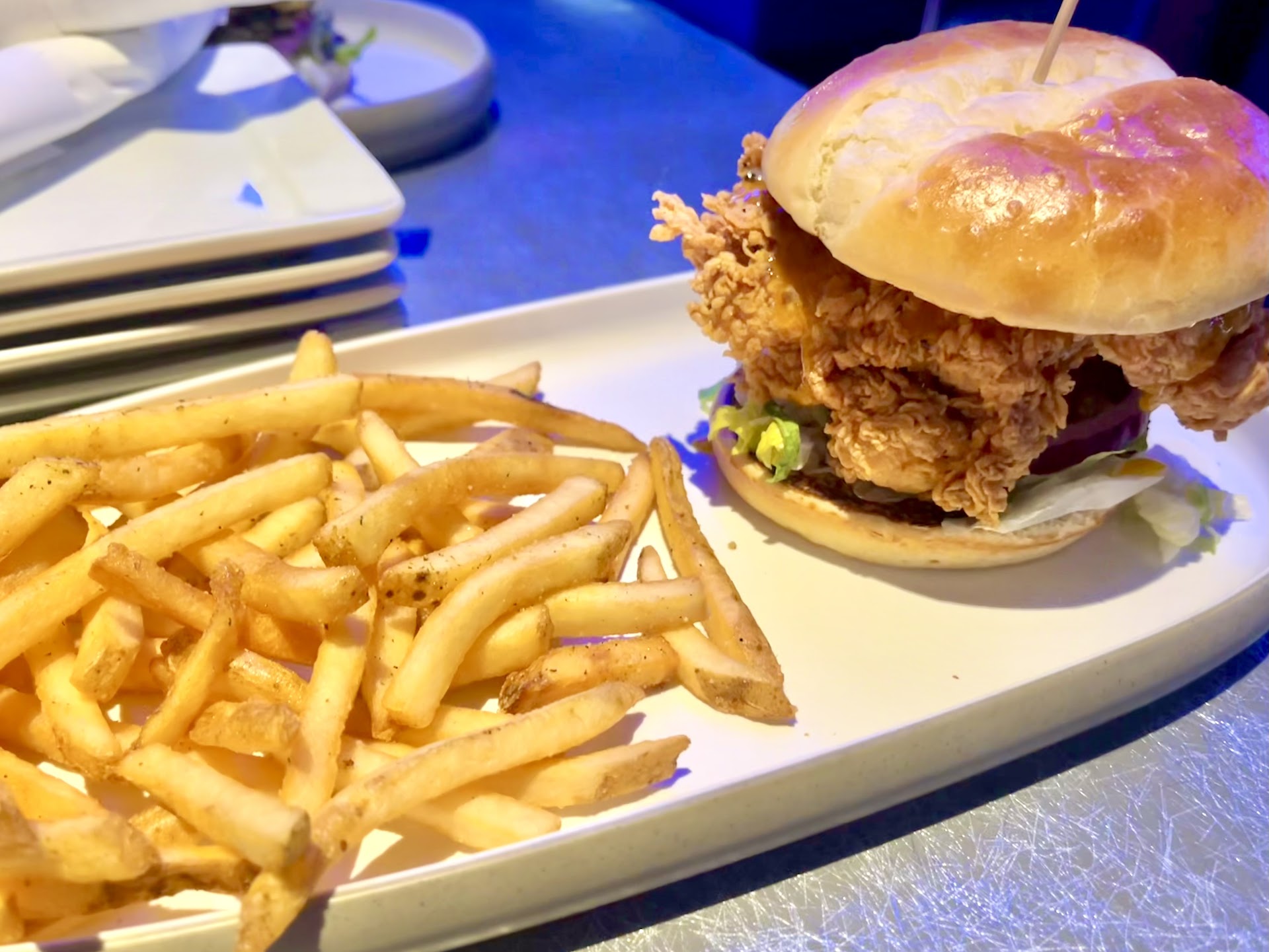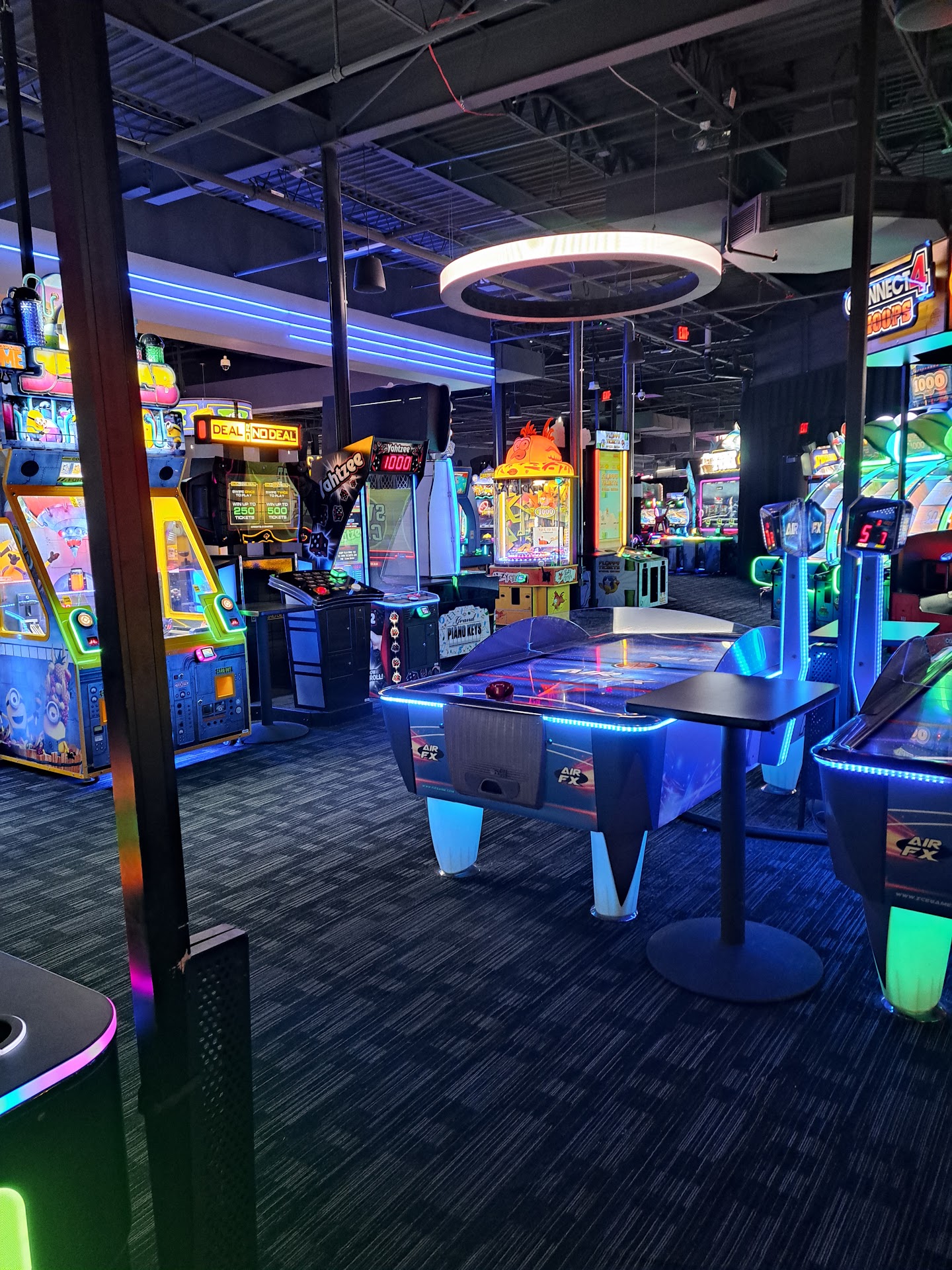 Literally every game except 1 was in order and they were actively working on it. The games are modern and for all ages (6+) the ticket redemption center is one of the better ones I’ve seen. Plenty of “prizes” for children and adults! The arcade area was all very clean and there are tables throughout to set your drinks. The situation with food was a little awkward because we went early (around 3pm) and the front door/desk girl genuinely had no idea if we could eat or not, and didn’t know where to send us so my husband went to the bar and asked if we were able to eat and he took care of us! He was helpful and nice but didn’t get his name unfortunately! the manager? (I think!) came by the table twice to make sure things were to our liking and really appreciated that. The food was great, hot and FRESH!! Not a fan of mango honey mustard lol but besides that, my chicken sandwich was delicious. Husband said he wasn’t joking when he feels like his cheeseburger was one of the best burgers he’s eaten (he said they’re smash burgers full of flavor and that the fresh veggies plus the bun were all chefs kiss lol) and my 9 year old son had a pepperoni flatbread to which he said was “really good” so I’ll take his word for it! I plan to order a bbq chicken flatbread next time. The ICEE didn’t work :( but who cares, when you can add vanilla or cherry to your soda?! Because the food area was so clean, our order was correct and fresh, with the attentiveness from our server +the (?restaurant/D&B) manager checking on us, we had a very nice dinner experience to add to the fun arcade experience we had afterward. All of the employees we talked to were friendly and created a family-fun atmosphere. We will be coming back!...