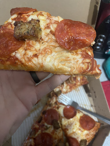 Read moreThis is my usual store to order from, but on March 29th I was given a raw doughed pizza twice in a row. I called and talked to the store after the first one was brought home and I took a bite and it was so gross and raw (and not hot, shouldâve been my first clue), they remade it for me, but the second one was more uncooked than the first one. The cheese was melted, but it was a pan style pizza and when my husband picked up a piece it started actually coming apart, the dough was still so raw. It wasnât worth the hassle of calling and trying again. I just cooked my own dinner so I didnât get food poisoning. I filled out the online web form and included pictures where the dough was visibly raw, and havenât heard anything from the store or Dominoâs corporate. Iâm just going to make my own pizza or go to another chain from now on. There were a lot of ânewâ people working that night, but serving people raw dough is a serious health and safety concern. I believe the error was they were trying to cook it like a regular hand tossed and the pan style is thicker, therefore common sense would say the temperature probably needs adjusted and the pizza cooked for longer. Very disappointed. Luckily I was only out $2 because I used a free pizza redemption and paid the up charge for the pan.