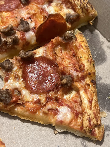 We have not had Domino's Pizza in years so we decided to give it a try. My wife used the Order Online and Carry Out which is very convenient. There is a Meter that shows how far along your pizza is so no wondering. We ordered two pizzas and a couple sides, the order was ready in seven or so minutes. The staff was really polite, I gave the order name and and was out. In all the ordering to carrying the pizza out was under ten minutes. And the pizza...the pizza was suppose to be hand tossed but there was nearly no crust. So personal opinion on crust will decide if that's a pro or con. The bottom crust is also pretty thin and flimsy. The pepperoni pizza tasted mostly of cheese and pepperoni grease. Kind of like a Little Caesars pizza that has sat a while and lost most of the flavor. Not what I was hoping for. The Buffalo Chicken pizza was right on. No complaints. If you like buffalo wings you will probably enjoy this pizza. The sides were great. The cheese bread was probably the best cheese bread I have had in years. And the cinnamon twist were also great. The meal was a little pricey with the bland tasting pepperoni pizza being my main complaint. Overall the experience was positive. The ordering and the customer service were great. The sides one Buffalo pizza were great. The pepperoni pizza was just a...