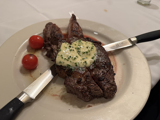 The ribeyes are cooked to order with a savory compound butter. The filet is tender and delicious.