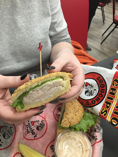 I went for lunch on Black Friday. I ordered the STP dipper with Danish Bleu dip, subbed potato salad for the potato chips. Everything was very tasty BUT - the sub roll had that icky gummy toughness you get when you microwave bread too long. I could not chew it. I may have been unlucky, of course. Menu is interesting, location and service fine, and everything but the bread was good, so I will likely give Groucho's a 2nd chance, but I'll ask how they prepare hot sandwiches. If they normally microwave the whole sandwich, I recommend avoiding anything with melted cheese, or order it cold and take it home where you can microwave the filling apart...