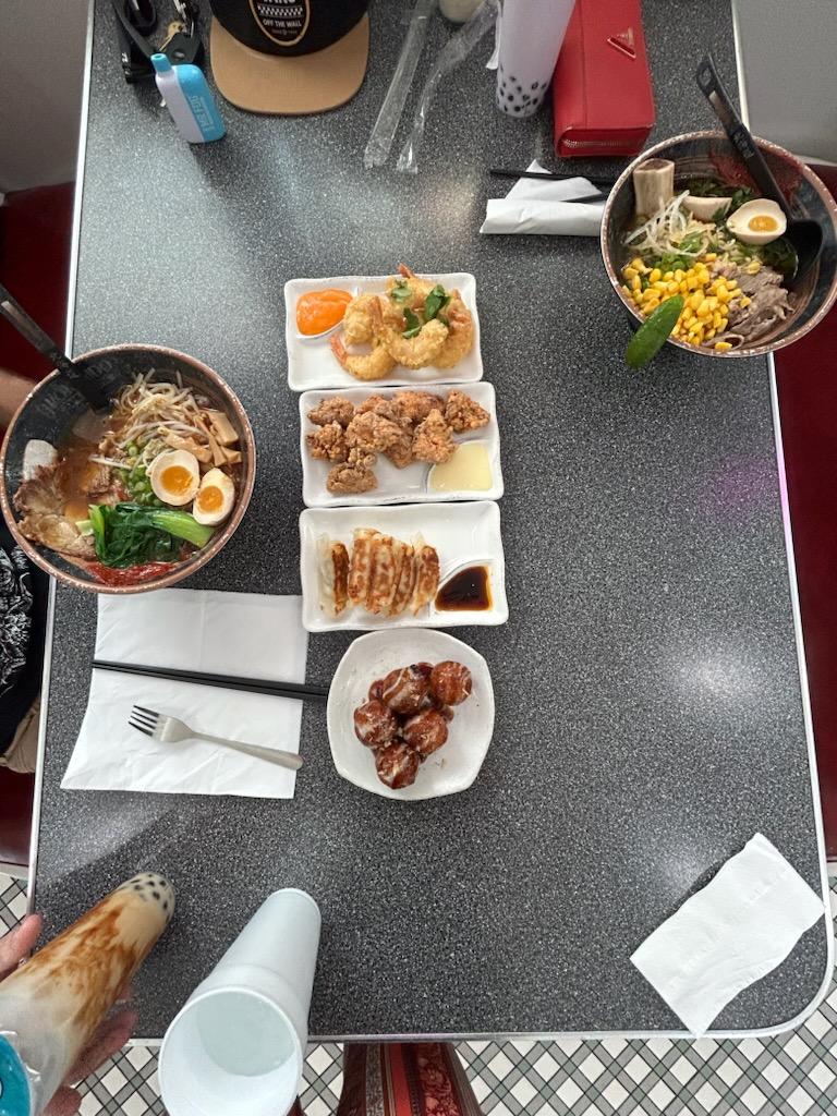 They had 1 dish that was labeled "vegetarian." I found out the broth was made with a pork product; there were remnants of pork in the broth, and pork fat on the bean sprouts. The cheese foam grape Boba tea, was spoiled, and had separated. When I took the food back to the counter to let them know about this. She just said ok, and I needed to leave the food on the table. That she comes out and cleans the table. I did NOT get, an apology or any offer to make it right! I had only taken 1 bite of the food, and the tea was still sealed; I was not going to drink something that looked spoiled. My sister and I went there for my birthday lunch because we wanted to try the food. Hers was worse than mine. Her egg that was in the ramen was dark brown, and frozen. And the appetizers were not any better. She ordered the Gyoza (potstickers) which were undercooked, they were seard on one side, and the raw on the other side. She also ordered the Crab Rangoons. She didn't receive the full order of 6, and they only had cream cheese in them. They were really dark brown on the edges, and the bottoms were raw. We spent over $50 on food that we both had 1 bite of. That's ridiculous!!!! Waste of money!!! And NO...
