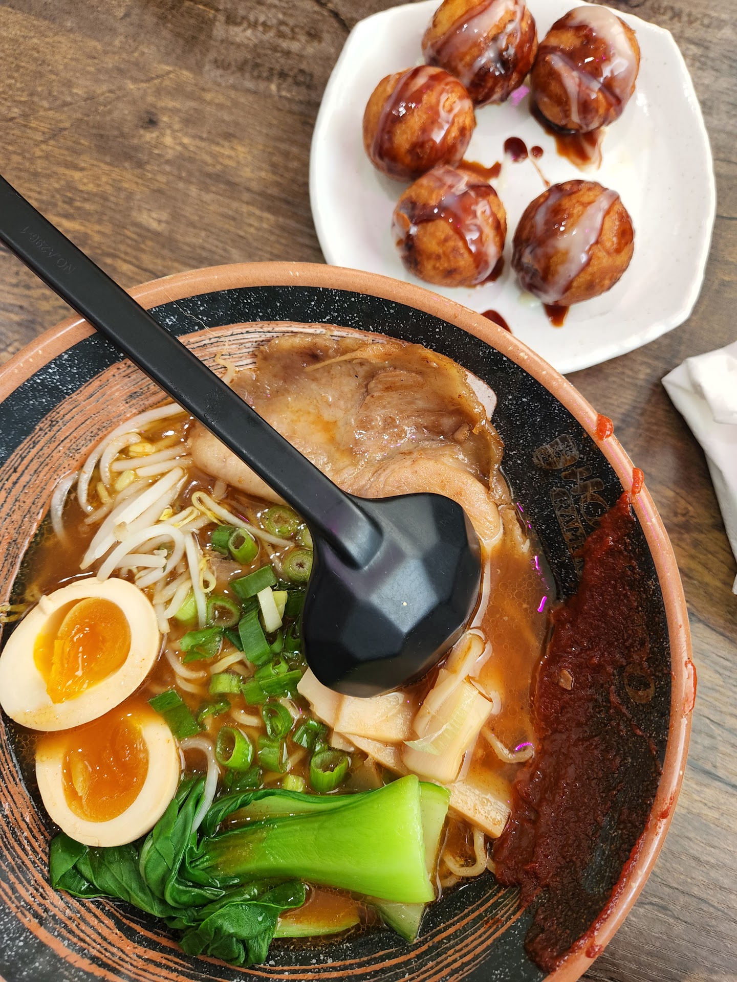 Read more2.5 stars. I am cutting them just a little slack for having opened recently. At 5:30 on a Saturday I ordered Garlic Tonkotsu ramen with extra Chasu (pork as the worker called it) and an order of Gyoza. On the photo menu the "pork" is a lovely piece of Chasu, in reality it was a pile of shredded meat. Couldn't tell you if I got extra or not. The broth was good, ramen was hot, egg was cooked correctly but not soy marinated for very long. My Gyoza were lightly pan fried but some how just plain cold...rubbery and cold... Hopefully they are better after they have been open longer, so far I am unimpressed for the price. For nearly $28 I got a bowl of okay ramen, cold gyoza, and a soft drink cup the size of of a small at McDonald's. If you are in the mall and want something new go for it, but set your expectations accordingly. If you are a ramen fan like me...well I would not make a special trip like I did. There are better options at similar price points and you won't have to listen...