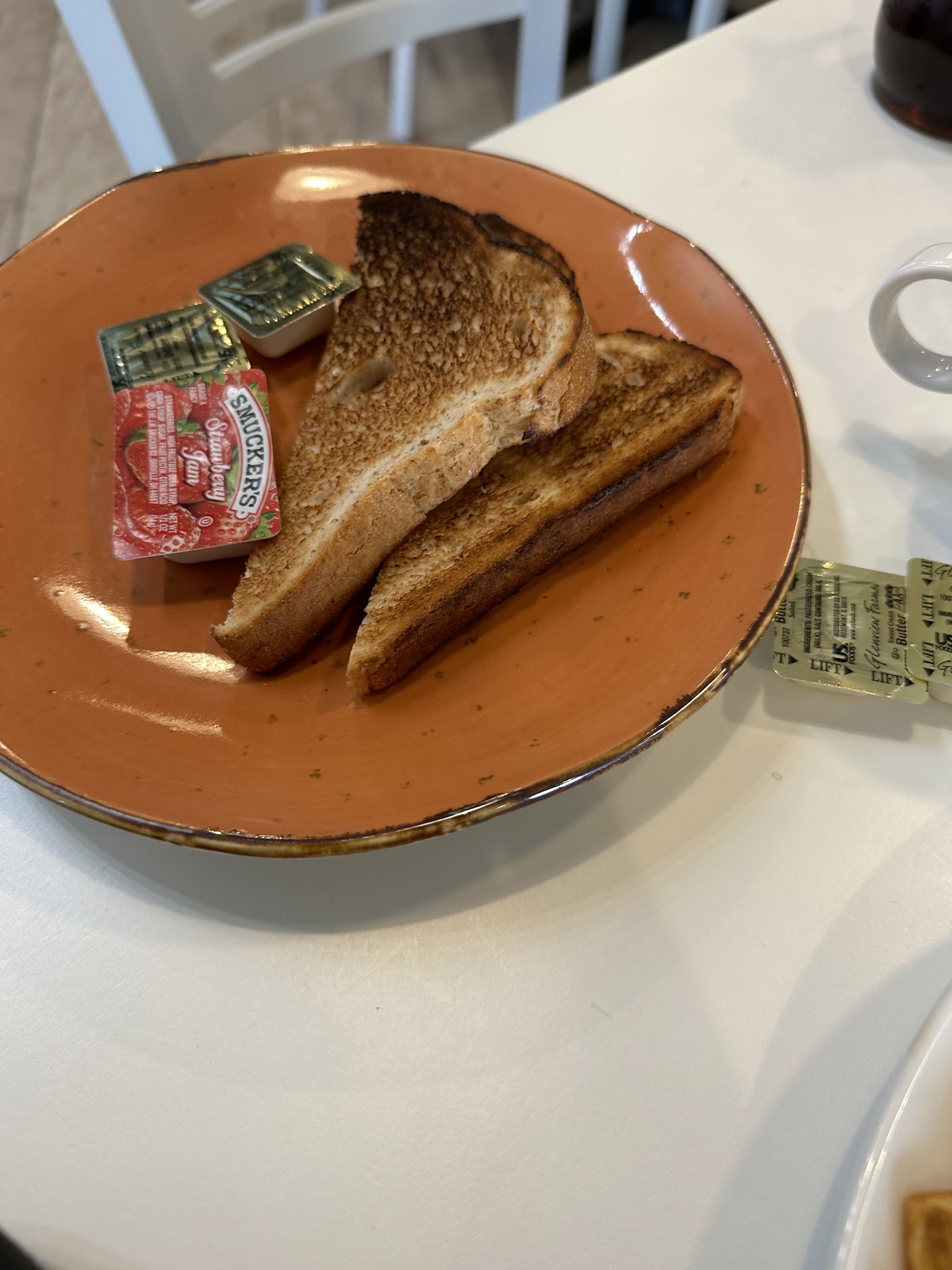 Tried the Hoosier bread and it was dense over cooked dough with barely any toppings. Would not recommend. My bf got the biscuits and gravy with a side of bacon and I canโt believe they even put out what he was served. I wish I took a picture because it was comical how bad it looked. Completely watered down to the point the sausage was separated out. You could tell by looking at it that it was awful. And the biscuits were so gummy they just immediately glued themselves to the roof of your mouth. The worst biscuits and gravy weโve ever tried. I got an omelet with well done home fries. The home fries werenโt even done let alone well done as I requested. The egg on the omelet was dry and over done. And the ingredients inside werenโt even cooked in, just kind of laid down with a dry egg blanket folded over them which is a real lazy way of making an omelet. They forgot my toast and overall everything was barely warm at best which again they werenโt busy at all. Total for two came to just under $47 before tip. Which if it was all really good I wouldnโt have had a problem with the price but because it was awful made the entire experience that much worse. Donโt...