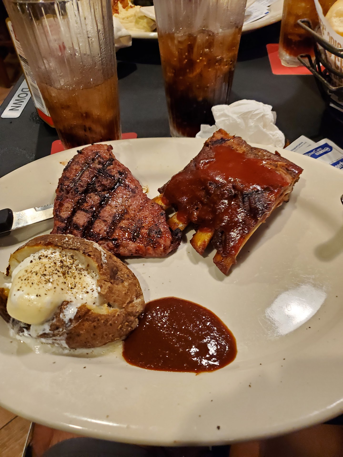 Everywhere was packed and when we pulled up there was barely anyone there. Should have been our first clue. Even though there were only maybe ten customers in the whole place we stood there for about 5 minutes before someone came over and actually greeted us to sit. We arrived right at 7 pm on a Friday night. We were seated and waited about ten minutes before our server came over. We ordered drinks and had to stop our server from walking away bc we also wanted an appetizer. Drinks were awful. My coke looked like tea and all the drinks were not good. We didn't complain. 20 mins in and we just got drinks that were not good. We knew we were just going to have to accept it for what it was. 25 mins in they brought out our app and it was 100% not their brand standard. It honestly was the exact same type you get from GFS. Same for the salsa. We had to ask for rolls and it took about ten minutes to get three. They came out small and the type you get pre done from GFS. They were cold. We asked for hot ones and they accommodated the request but the hot ones were not brand standard either. My son got the fried chicken meal. It came with one piece of chicken that looked like they took a chicken breast and pound it out so it looked larger on the plate. My child and my mom got the same exact sides but his came in different sized serving dish. Almost like there was supposed to be more chicken on the plate but they used a bigger container to fill the void. I got a salad as one of my sides and I had to pick out the written lettuce. I got French dressing and once again it was not brand standard. It was off brand and was not good at all. I ordered a steak and when they brought it out and it was over cooked . They offered to re cook it and when they brought it out it was a different cut of meat. Looked exactly the same as the other on the out side but was purple and ice cold on the inside. It also did not have the sides I ordered. Everyone was done eating so I just asked them to take it off the bill. I also didn't want a steak that came in pre seared and just put inside of the machine to " cook it to order". The gentleman was upset when I asked to just have it taken off the bill. The server stated that we were cutting into his tip but they removed my meal and discounted my son's. The cook also came back and gave us two $5 off coupons for our next trip. The staff was very accommodating in trying to fix the issues. I honestly would not recommend anyone to go here. The quality is just not...