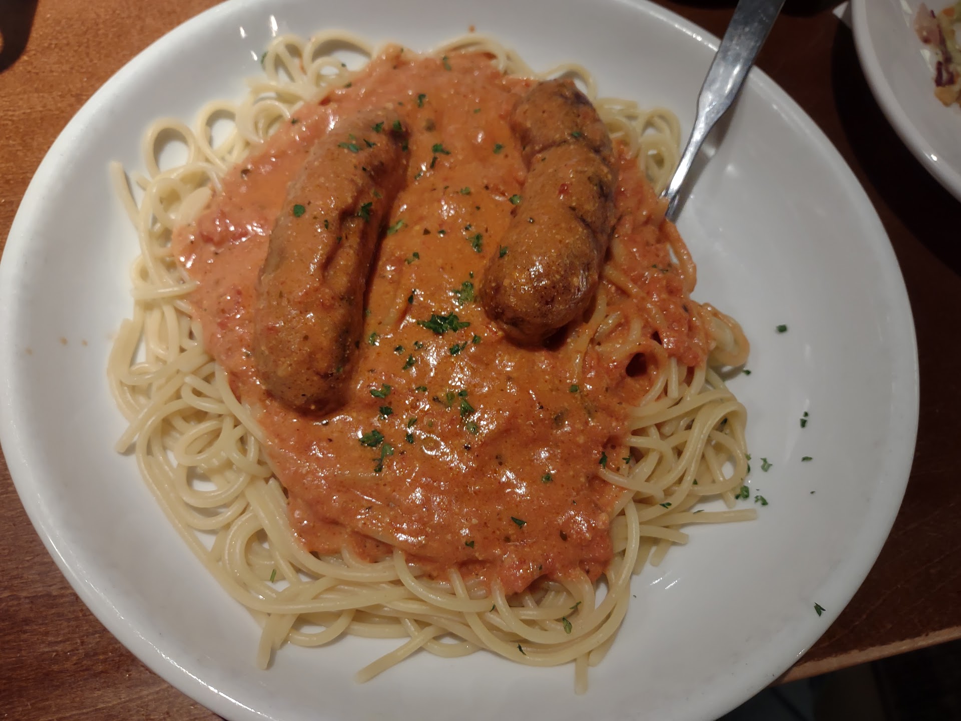 Read moreI usually like the food here. Havent been in a while and decided to take my college aged daughter out for dinner. With the wife and two other little ones. The server was more concerned with the bridal party at the big table and they all wasnt there yet. Waited for a while for him to get our drink orders and even longer for the food order. I get people get busy but he was all over the larger group mainly because larger groups tip rather well. Especially bridal groups. However when our salad finally came I opened the silverware to find dirty silver where. Both a knife and fork with food left on it. I waited for a chance to get his attention. While my appetizer was getting cold. He gave me another set of silverware. And again I found and even dirtier fork in this roll. I guess 3rd times a charm. Finally a clean set. We waited a long time for out food. Daughter was happy with her dish, my sons pizza was soggy he did retire us another that was better pizza. My dish was the seafood alfredo. The outer noodles were dried up from sitting heat light too long. At this point I was already there an hour and half and wanted to get the visit over with. I have never had a visit like this before this one. Maybe I'll get a better one next time. If not I cant say I'll go back. Spending 139 bucks is not worth it. I did tip the guy but the 15% he got would of been way better if visit was better. My mom was server when I was growing up so I'm usually a good tipper and have to at the very least tip 15%. I may wait for an endless deal before returning in order to get money's worth...