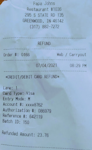 Ordered 2 pizzas 7/4/21, and they were greasy and terrible. Went back to store today (7/5/21), and was treated rudely by Matthew who says was General Manager. He didn't seem like he cared at all, and kept asking me questions when the information was on my receipt. Then he says IT'S PAPPA JOHN'S POLICY NOT TO GIVE REFUNDS JUST BECAUSE SOMEONE DOESN'T LIKE HOW THEIR PIZZA TASTES?!? I then asked for the District Managers contact information since Matthew was rude, and that he's telling me that the 2 pizzas that taste awful, with 3 slices missing, is not normally refunded?! He said Phil is the District Manager after I kept asking. Also, it would be helpful to have a trash can at the entry way for customers (now EX CUSTOMER) to use. DO NOT...