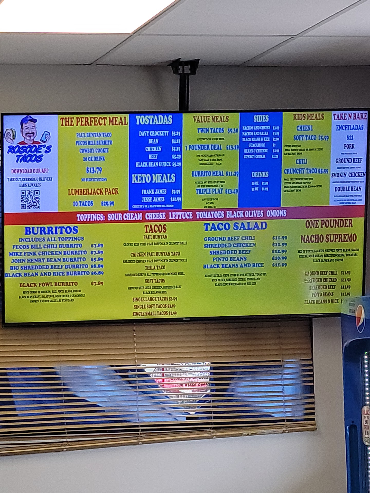 This was our 2nd visit to Roscoe’s. We’d tried it once before and it was “okay.” Nothing BAD, just not “out of this world.” Decided to give it a 2nd shot after they reopened after the pandemic, and it was again “okay, tasty, but not to die for...”. My gripe is this... We’d even mentioned that it was our 2nd visit... We ordered the 5 chili tacos for $8 (counter girl - Crunchy or soft? My wife - soft), the Ground beef chili taco, the shredded chicken taco and the fowl burrito and one of their pounder nachos. The bill came to just under $44. Then the girl asked if I wanted my receipt and I said “please.”
