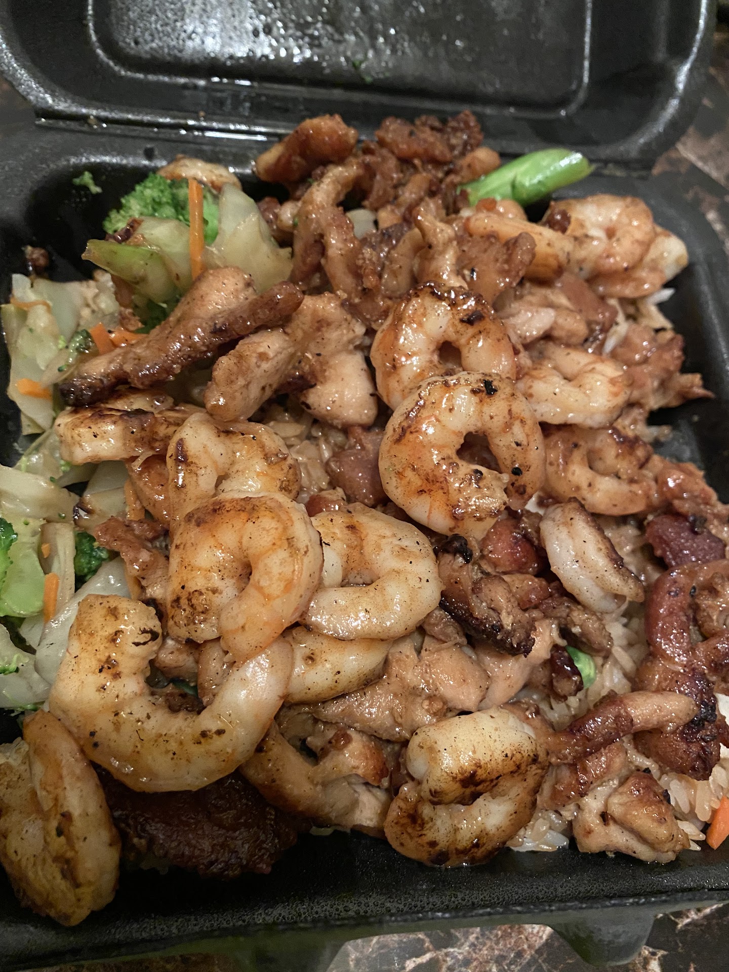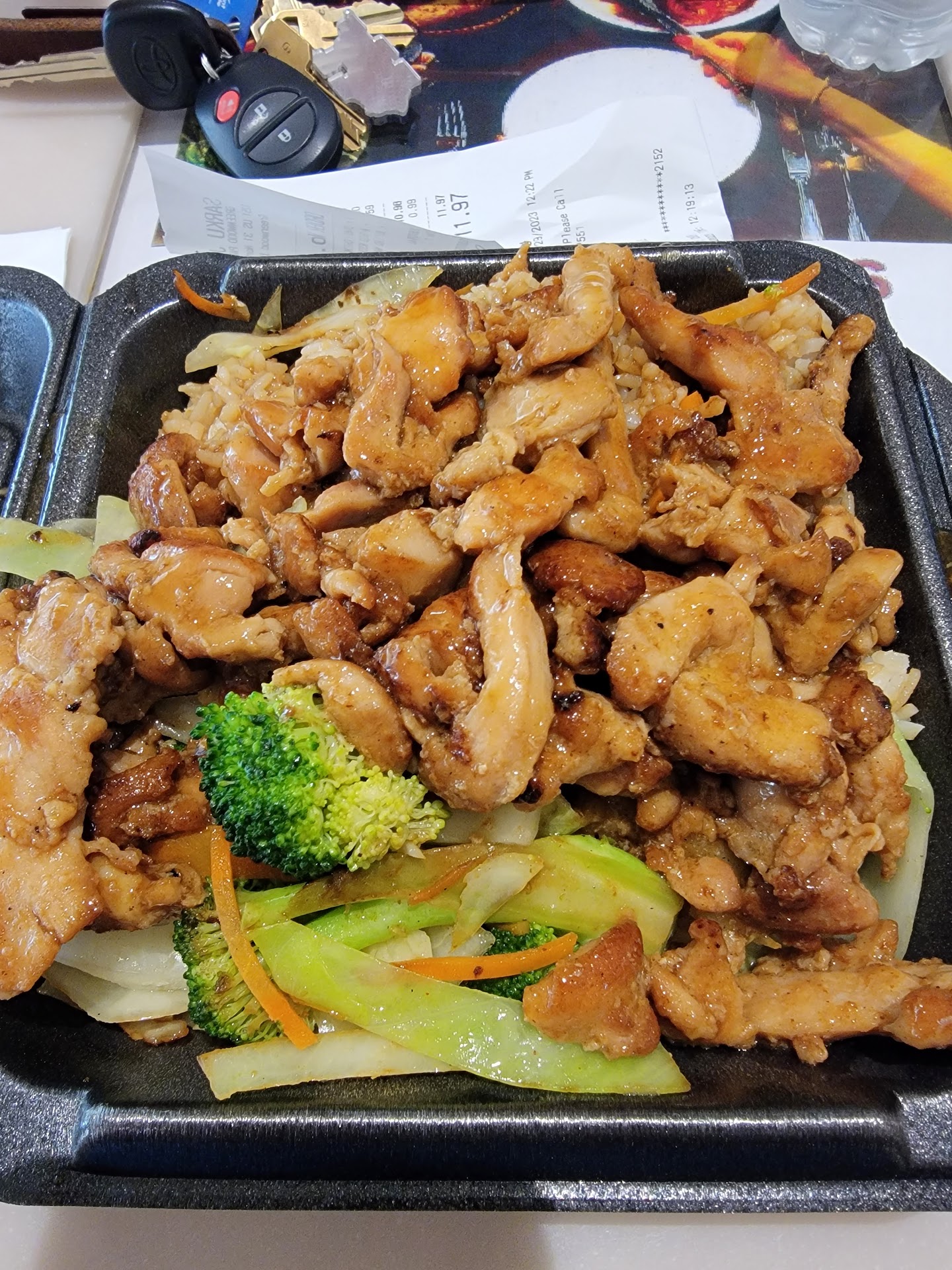 It's good place to get food, I could give 5 stars, but, I can't give my complaint is on the quality to the cook, when they using the cooking griddle don't care by clean correctly between the cycles cooking, on the food coming any black burnt charcoal or burn rest food, it's happen because they NOT are serious carefully, when the cooking griddle needing clean and they don't stop continue cooking once again over again, the black burnt are between at the veggies, rice streamed and chicken, this problem occurs before that the food it's finally served to customer.😔😐 what's really we are eating Not healthy but very dangerous to our health. It's not first time with this issue, I don't understand if is only to me important to health or a either don't care a other people's getting food at this...