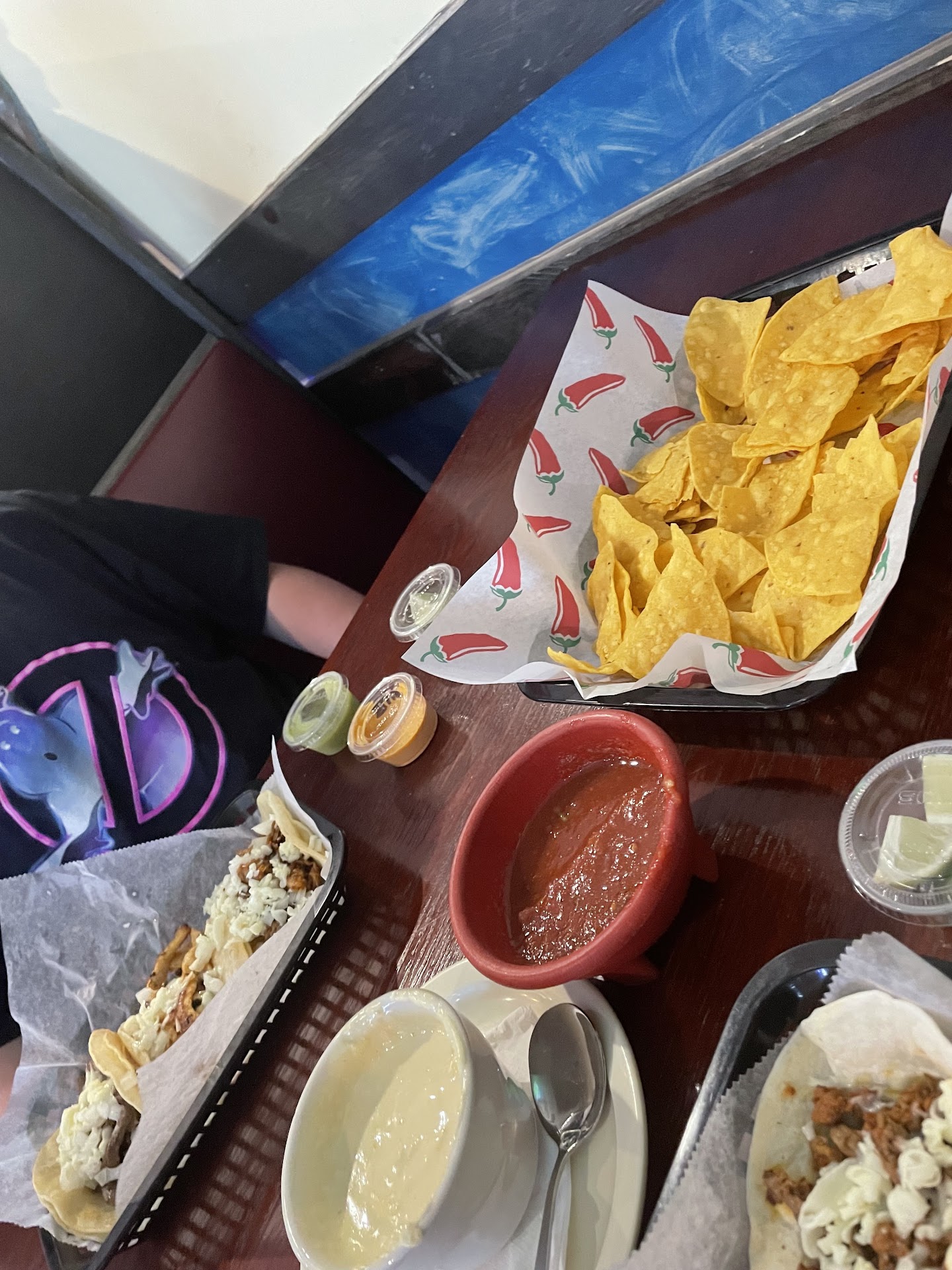 Unlike every other non fast food Mexican restaurant we've ever ever ever patronized, Tacos and Brews made us pay for chips and salsa. We ordered two entrees (3 tacos with side of black beans AND burrito with side of white rice with no flavor) and two softdrinks. Our bill was $42 before tip.