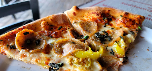 I usually get the Pauly's Preferred pizza. Pizzas are all personal sized so its a little tricky ordering for a big group sometimes. Would be nice if there were options for a variety of sizes. One personal pizza is plenty of food however. If you are someone who likes smaller meals of pizza, or would only eat a slice or two of Domino's, you will have leftovers. The pizza is wood fired so the crust is thinner and a bit crispy. Otherwise, crust is not dry and all the ingredients are fresh. I think the ratio of toppings to cheese and sauce is good as well. My only complaint would be that the sausage is slices of links instead of ground sausage.