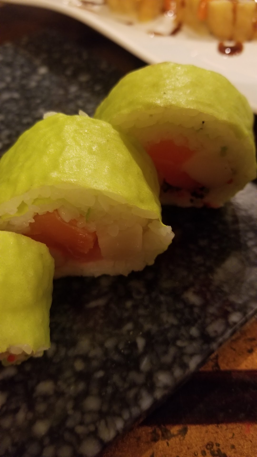 I ordered the Shrek Forever š roll and it was delicious. The roll is big and each piece took more than a single bite. The fish inside was in generous chunks, and overall it was a delicious creation with subdued, mild flavors.