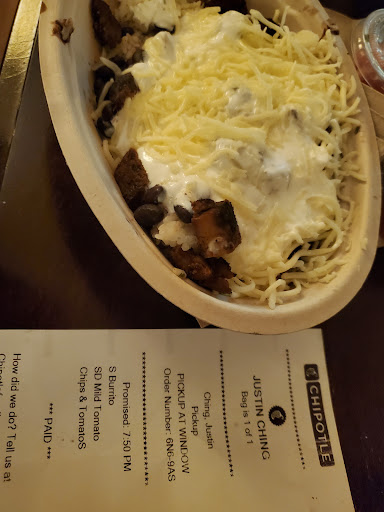Read moreI hate having to do this, but this is the worst location of a Chipotle I have ever used. It's unfortunate because it's super close to me and convenient. It would be convenient if my orders were correct. I have done four pickup orders and in those orders something is wrong every time. It's a consistent issue which is why I'm putting such a poor review. Typically the chips are missing or the drinks are wrong for my kids. Today the same thing happened with missing chips, and I got an extra order steak bowl with queso. So I guess I went home with someone else's food. I've called Chipotle's main customer service line, and gone through them to complain officially. They will be contacting the store and hopefully they'll do something about it. Do all the customers who are doing pick up orders, y'all need to pay close attention to what's in your bag. Whoever is managing this Chipotle needs to get it together because y'all are...