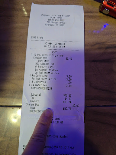 Read moreOrdered online go to drive thru pickup they’re out of mashed potatoes, they’re out of chicken sandwiches. Fine, changed my order to spicy tenders double fries and blackened ranch dipping sauce. What I got: a bad attitude from the employee, blackened tenders, no ranch and soggy cold fries. When I said that wasn’t what I ordered, I was told it was…that I ordered blackened tenders…NO, I ORDERED BLACKENED RANCH DIPPING SAUCE AND SPICY TENDERS. They refused to give me what I ordered. I had already wasted 20 minutes waiting for what I didn’t order, I just wanted out of there. I’ve read the reviews for this place and 90% were bad reviews. The owner responds “sorry, hope your next visit here is better”. I wouldn’t go back to this Popeye’s if it were the last one on earth. Hey owner, fix your issues, there are a lot of them and they never seem to get better. I will also be talking to corporate about the craptastic food and service that this location seems to be famous for. Anyone thinking of getting food from here, do yourself a favor, drive to Batesville or...