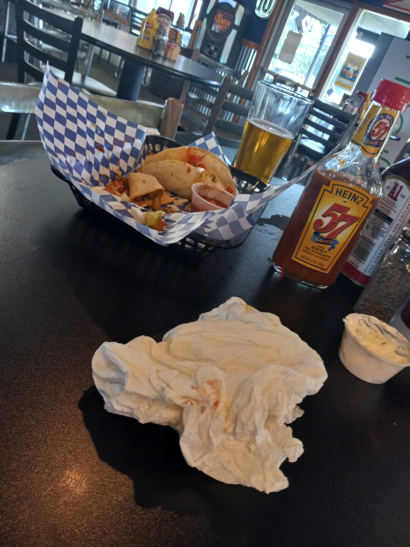 My food came and had little weird hairs in it? Not like human hairs, it almost looked like lint of some sort.. like they wiped their hands on their apron then touched the food. It was very gross. Also my french fries had what appeared to be a beard hair or eyelash.