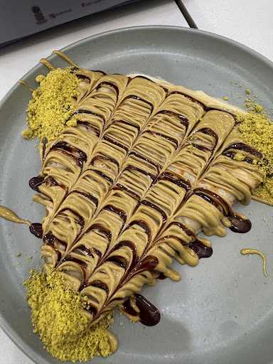 I always order at this Cafe via UberEats; #2 Bora Bora Crepes, Spanish Latte, #13 Nutella Custard Croffle, # 14 Blueberry Cream Cheese Croffle, and last but not the least, the Mocha Haze Protein Shake (the best) š¤ I pretty much order snacks here almost every time I had a long day of just studying. Theyve got the healthy, flavorful snacks. Well I just ran 4 miles this morning and decided to treat myself, so I decided to check it out in person today and I was not disappointed. This place is pretty brand new it seems like. The cafe is very clean and spacious. So vibrant! Very āDubai-likeā vibe you know very extravagant and colorful -kind of vibe. The Staff they are very friendly and welcoming. Literally, one of the staff got out of the counter, just to bring my food over to where I was sitting. This kind of customer service is rare these days. I ordered the Brown Shaken Espresso and #18 Strawberry on Stick is so good. Shaken espresso is probably better than Starbucks. The sweetness of both the coffee and the strawberry covered with Belgian chocolate is not as overwhelming as many cafe these days. They have other healthier option as well; acai bowls, fruit smothies, etc. too many options can be overwhelming so I recommend to look at their online menu instead. Or you can order on their self-checkout screen as well, by the door. Not too busy around 4pm amd theres plenty of seat. Parking is free and they are open till midnight. So you can literally come in to do homework or do groupstudy here or just hang-out with friends! This place might be better than any american smoothie franchise, im afraid might be better than jamba juice. They take pride in their craft and it shows on their food and...