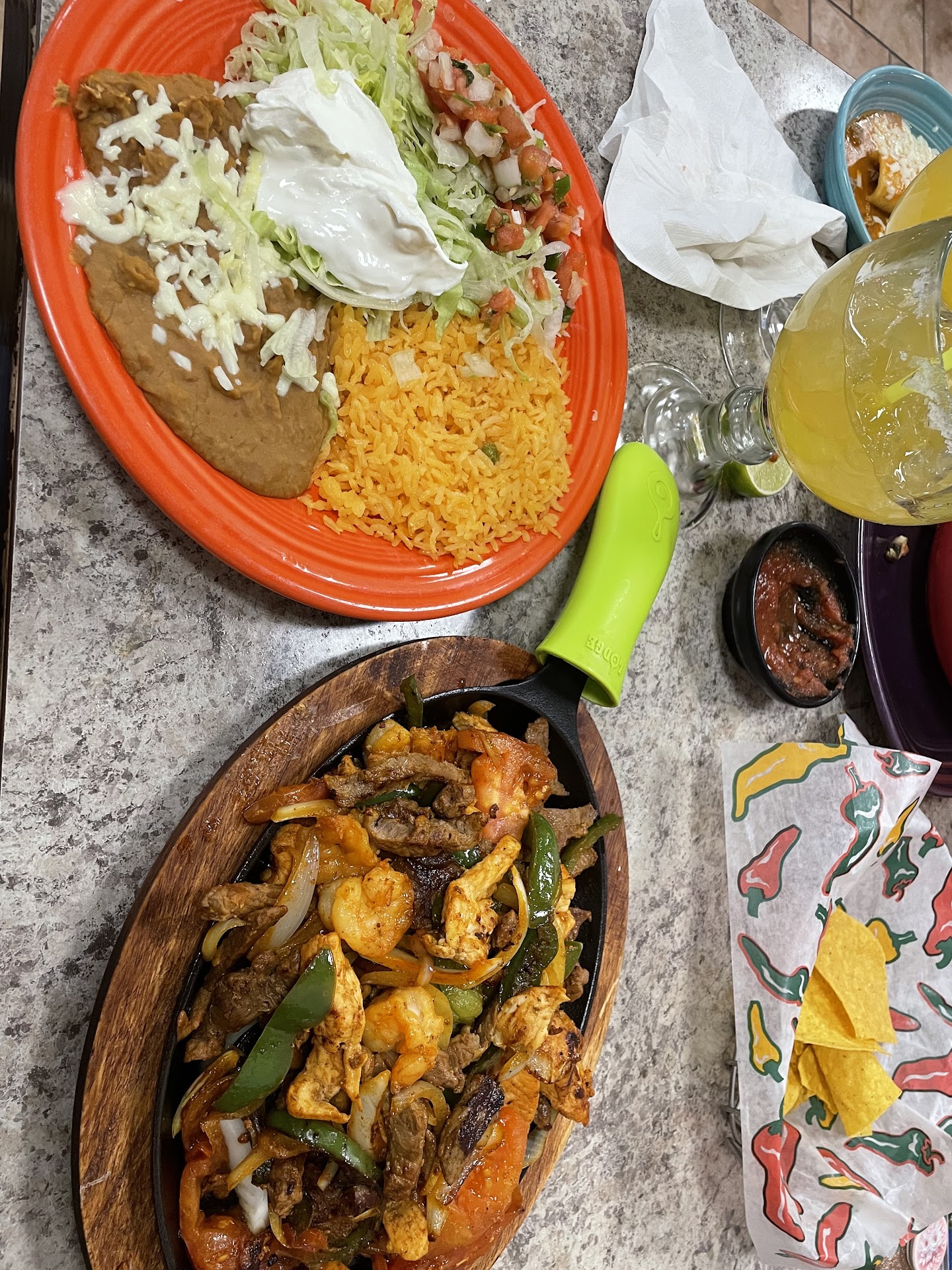 They don't skimp on anything here. Even the refried beans are perfect. Shrimp are big and plentiful, the tacos are filled with meat, and they give you more than enough of anything. The guacamole has jalapeños in it but is perfectly creamy and fresh.