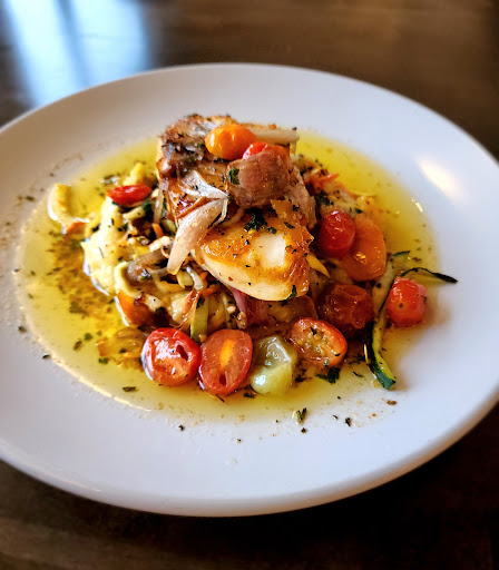 A mixed bag of both good, and just okay for this first visit review of this lakeside eatery. We made reservations for Sunday of a holiday weekend. They were very accommodating of our requested time. The weather was frankly horrible to truly enjoy the lake views, but most tables are window tables, and the restaurant has a modern and casual atmosphere. Our waitress was very friendly, but after a nearby table was visited by a separate waiter, we noticed she never gave us the lengthy list of specials that night, offered us bread, or even brought water to drink. We both had cocktails, which were very unique and tasty. Our initial two choices for an appetizer were both sold out. We were then offered a flatbread offering, which we later found out was on the special menu for the evening. It was both tasty and filling. I had the Sea Bass and my wife had the Ribeye for our dinner choices. My fish was very good, although never before having beurre noisette as part of my dish, the amount of butter resting in the bottom was a little off putting to me personally. I can't say it hurt the flavor, but a quarter inch of oil surrounding my entire meal felt a little rough on my arteries. The Sea Bass rested on mashed potatoes with an added shredded vegetable medley. I can't say I would order it again, but if you're okay with the beurre noisette pairing, I think the flavors are certainly something you will enjoy. My wife ordered her steak medium rare, and it was definitely a medium at best. It also lacked the marbling of a true Ribeye. It wasn't horrible, but a little of a disappointment for her expectations. All in all our experiences rate another visit to this quaint little lakeside restaurant. If you're not offered the specials of the night, definitely ask, as some sounded quite delicious. Not an economical place to eat, but with a few tweaks here and there, I think the experience...
