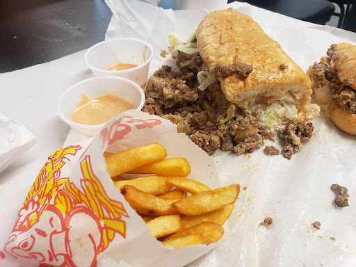 Every time we go to the west Bank we attempt to try new places to eat each time. This place's main thing is, quantity. They don't use a chopped steak, opting instead for ground beef... but they give you a lot of it. The bread is good, the fixings on it were fresh and tasty, they use a mayo that flows nicely into the hot beef. It made for an overall fairly good Philly. There are better ones out there technically yes, but for this price point and the quantity you get, its a very solid lunch option. The highlight for us was the house sauce. I'm a huge sauce nut and wow was I impressed. Fries were cooked to order and melodies perfect with the house sauce. The service is standard counter service and the actual restaurant sitting space is cheap and not much effort put in. But that's not the point of this place at all is it? Its a quick, affordable and overall pretty decent Philly spot....