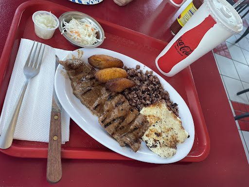 Read moreThe place is clean and nicely put together. The food was ok, I expected more quantity on the plate, but, only one piece of carne asada. Carne asad should be served as a long piece maybe even two but here, we got only one. The gallo pinto was not at it’s best. Plantains were fried well, and repollo came with its own onions chopped which was nice. Had to ask for their picante, and it was worth it it’s green and tastes like chimichurri, took that baby home. Fried cheese should be cut think for the frying process, but here we got a thin slice.., so not a fan of what they provide here for the buck! Sodas are from the fountain so be prepared to have a Clorox drink 🥤 with your food. Overall it’s ok but prolly won’t be back as there is nothing wonderful that will bring...