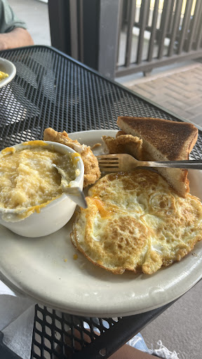 Decided to try this little, big spot in Gretna since I have passed here so many times on the river. There is indoor and outdoor seating. It's sit yourself and then the waitress come to you. Our waitress was Tina and Brandy but mainly Tina. We received our menus and looked them over. Ordered water, lemonade and Arnold palmer to drink. The Arnold palmer was perfect. The lemonade by itself taste more like a powder mix. We ordered the fried mushrooms and spinach artichoke dip for appetizers. The mushrooms were served fresh with a side of "dill ranch". My only downside is they don't remove the gills, which give a bitter taste, other than that, they were really good. The spinach artichoke dip was good but one of the cheeses was very bitter. Not very moist. We then ordered our main course. Mom choice the daily special "Mama Lou's" Fried chicken. It came with 3 random pieces ( they chose breast, leg and wing) and Mac-n-cheese( still cold), which there are NO SUBSTITUTIONS on specials so she had to order a side of zucchini and squash. The chicken was VERY, VERY, VERY crispy. So crispy that it would barely cut with a steak fork and therefore could NOT be bit with bare teeth. In other words it was too hard to eat the skin. However, the breast was perfectly crispy with good seasoning. The inside was ok on the wing but the leg was still red inside which made us believe it was old or cooked too fast. The alligator po'boy was ordered with added grilled onions, dressed with lettuce, tomatoes and pickles. I chose the sweet potato fries for an extra $2.50. The alligator did not have any seasoned flavor except for a little kickback at the end of each bite, other than that, it was bland. The bread was awesome though, soft and crispy all in one. The fries were hot, crispy outside and soft inside to perfection. There appeared to only be 3 servers besides the bartender. Trina did an awesome job serving us. She moved to say it was a packed house and she also had a party of 22 behind us. Overall it was a pretty good experience thanks to the appetizers and drinks. The $65.86 bill suggested that on the next go round, maybe stick with something safe like onion rings and seafood Platter. * big bathroom...