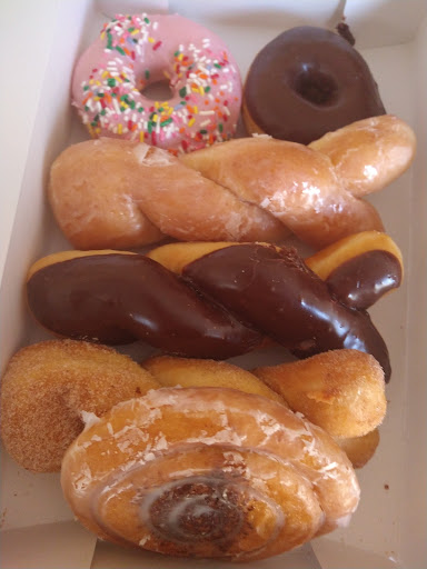 I love this place. Their donuts are the best in Griffin. My favorite is the original glazed and the donut holes but I also love the blueberry donuts. My husband and daughter love the creme filled donuts. They have at least 10 different flavors of filling you can choose to put in the donuts. My husband usually gets creme cheese, Bavarian cream, blueberry, raspberry, or strawberry. We love their pigs in a blanket too OMG they're so good. Definitely let them warm it up for you unless you're not planning to eat it yet. They usually have a good bit of the original glazed and the ones that have chocolate on top but the blueberry donuts and other flavors sell out so don't wait until right before they close to go up there. Sometimes they sell out of donuts and close early. You will not be disappointed...