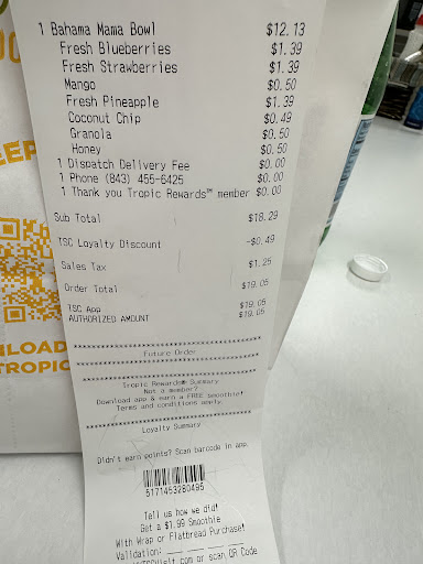 Read moreWow! I love Tropical Smoothie and was so happy to see that one was brought to Griffin. I ordered the Caribbean Jerk wrap, jalapeno corn and the Kiwi Quencher(starburst). The food was fresh and flavorful while the smoothie was refreshing. The atmosphere was clean and inviting and the staff were SUPER friendly and attentive! I’m highly impressed and will...