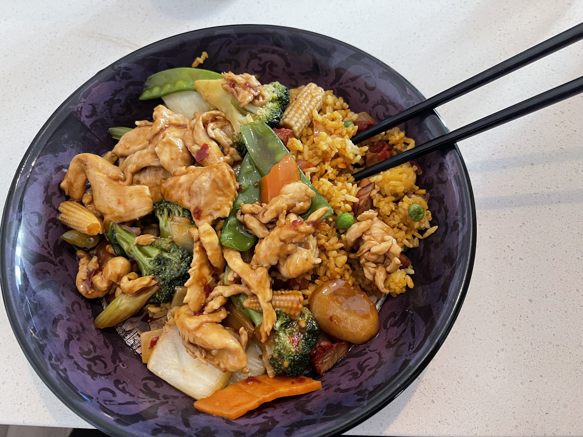Black pepper chicken – a little sweet for our taste, but flavor was still plentiful. If we ever got this again, we would order it with no sugar. Right amount of spice and sass. No jalapeños though, as advertised, but the spice was still great.