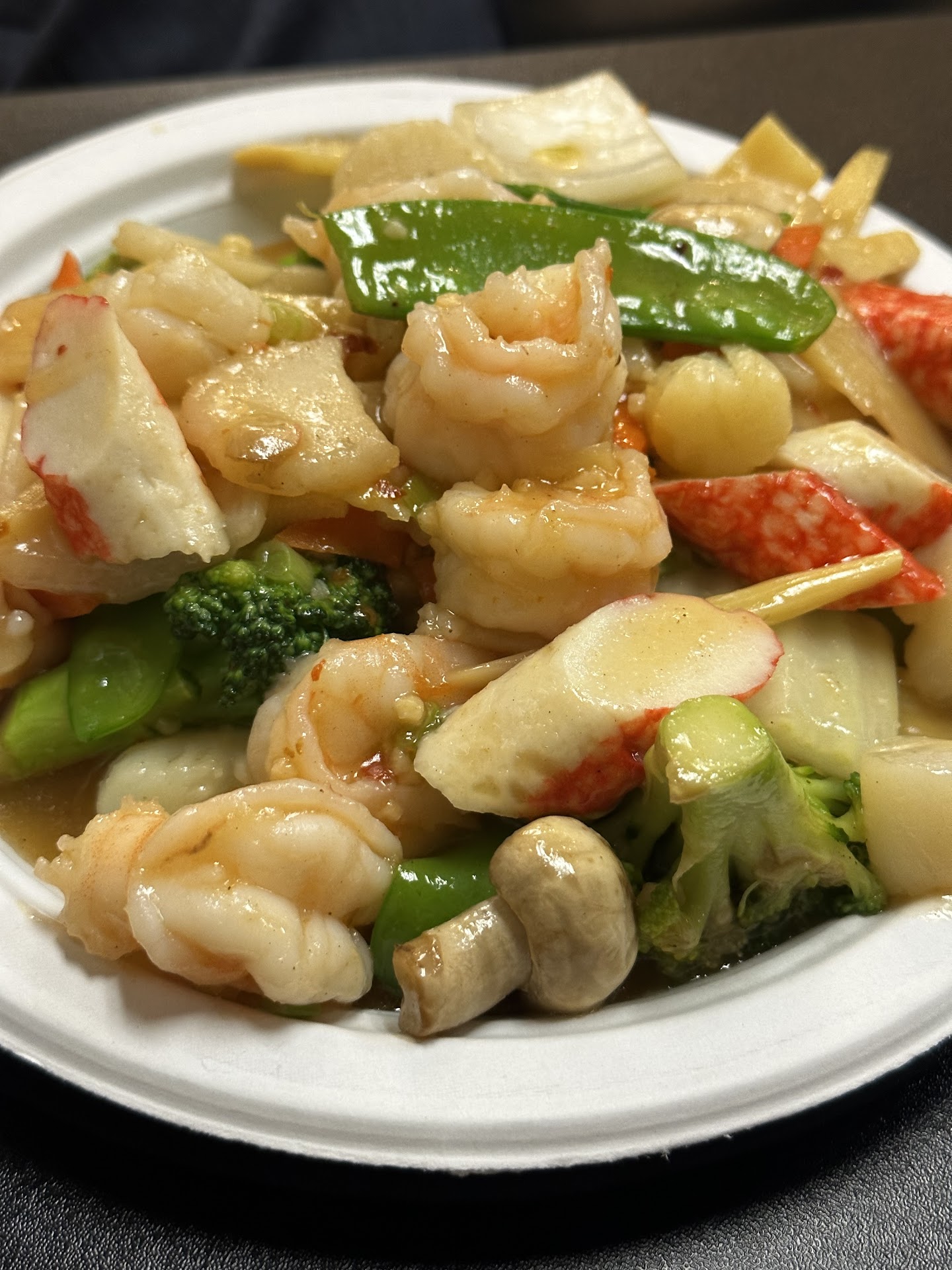 Seafood combination was also very tasty. We ordered it spicy and the spice level did not disappoint. Didn’t burn our faces off, but had some nice heat. All entrées come with one vegetable eggroll, one crabmeat rangoon. CR’s were a little sweet for our taste, but the eggrolls were good.