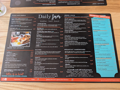 Despite its delightful ambiance, bright spacious interior, and warm welcoming, Daily Jam was a bit of a disappointment for me. For a brunch spot that boasts “Farm to Table”, I found our selections lackluster.