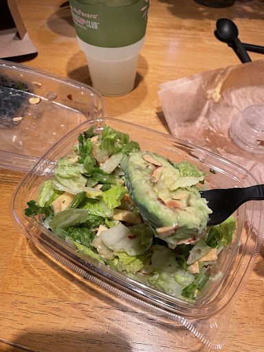 Read moreI wish I could give this Panera 0 stars. The past 1-2 years it’s gone down the drain. I ordered today on my mobile app and I came in early so I went to go sit down in the back. One of the employees that was standing on the outside of the counter handing out pick up orders was yelling at a customer in front of everyone to never come back again and he wasn’t allowed. The customer continued walking out and didn’t comment back. The employee said he doesn’t like how he grabs the bag from his hand every time he comes in. Now I see why… they are extremely behind and everything is WRONG! They are all yelling and talking about customers out loud. I get it gets busy and overwhelming but the way they acted was so unprofessional. Finally when I got my order I left, I made the mistake of opening it when I got home. I got a you pick 2 an Asian sesame salad with a chipotle chicken sandwich half. When I got home it looked like a handful of lettuce in the container. Come to find out they put a whole half of an avocado in my salad under the lettuce. This salad doesn’t even contain avocado. My sandwich was a whole sandwich. I asked for turkey instead of chicken (the only thing right) and sourdough instead of focaccia. They didn’t put sourdough and barely put any toppings on the sandwich, so it was all bread 4-5 turkey slices stacked. I’ve never been so disappointed with an establishment. It should not be $31 for disappointment. Undercover boss really needs to...